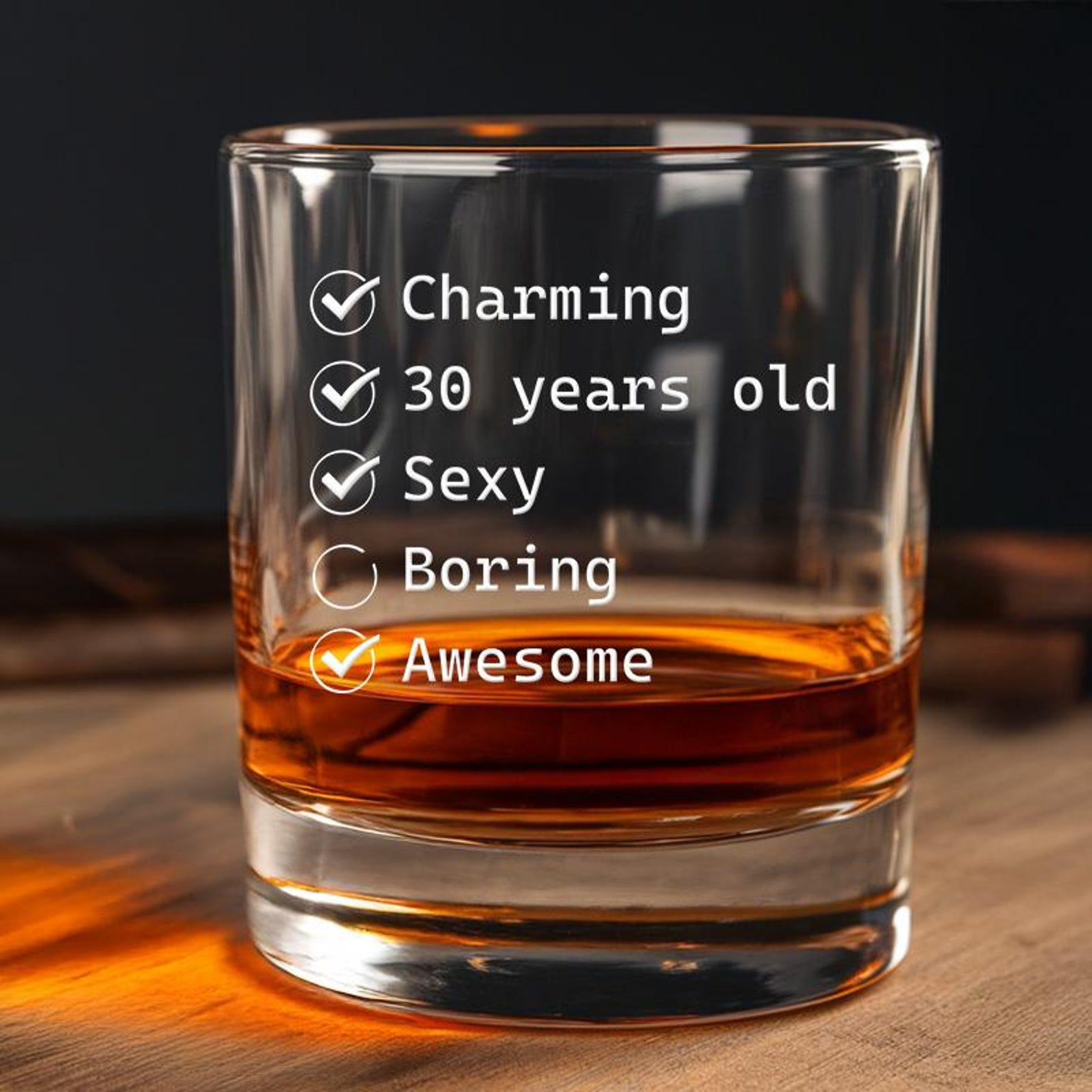 Check Box Birthday 30 Engraved Whiskey Glass | Funny Gift Idea | Birthday Gift For Friend