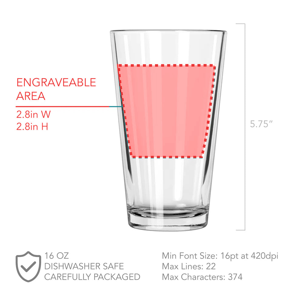 Pint Glass (16 oz.) – The perfect go-to for beer, cocktails, or soft drinks.