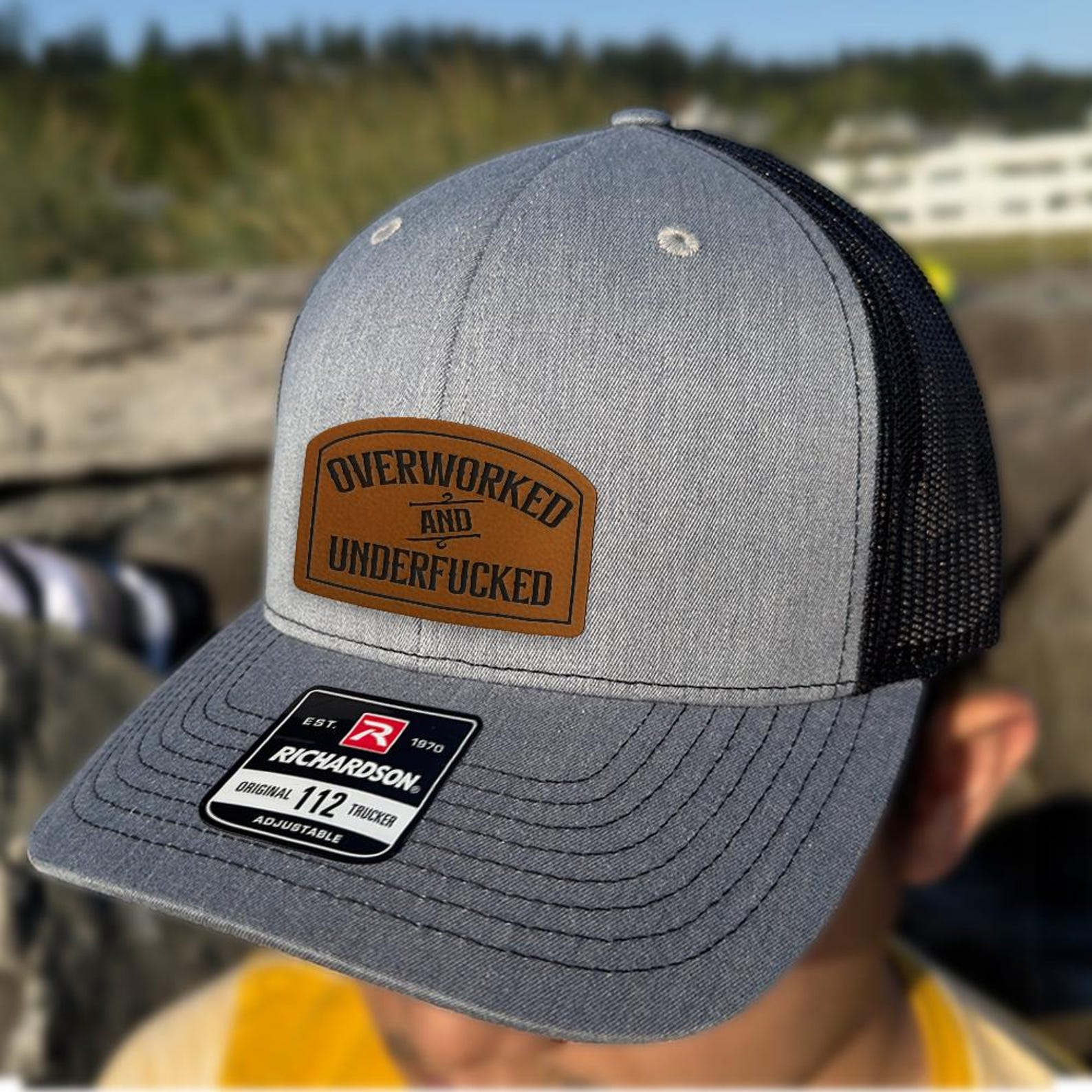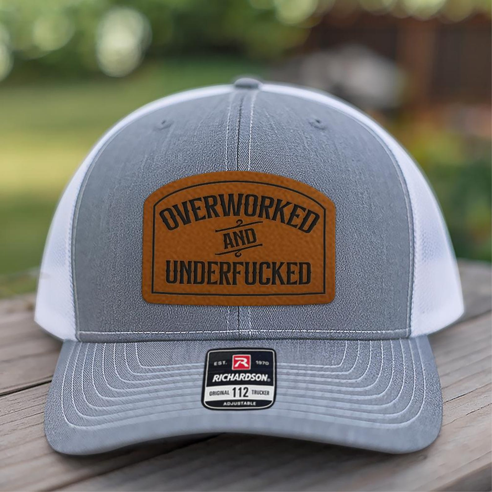 Overworked And Underf-cked Trucker Hat | Leather Patch Hat | Funny Gift Idea For Friend