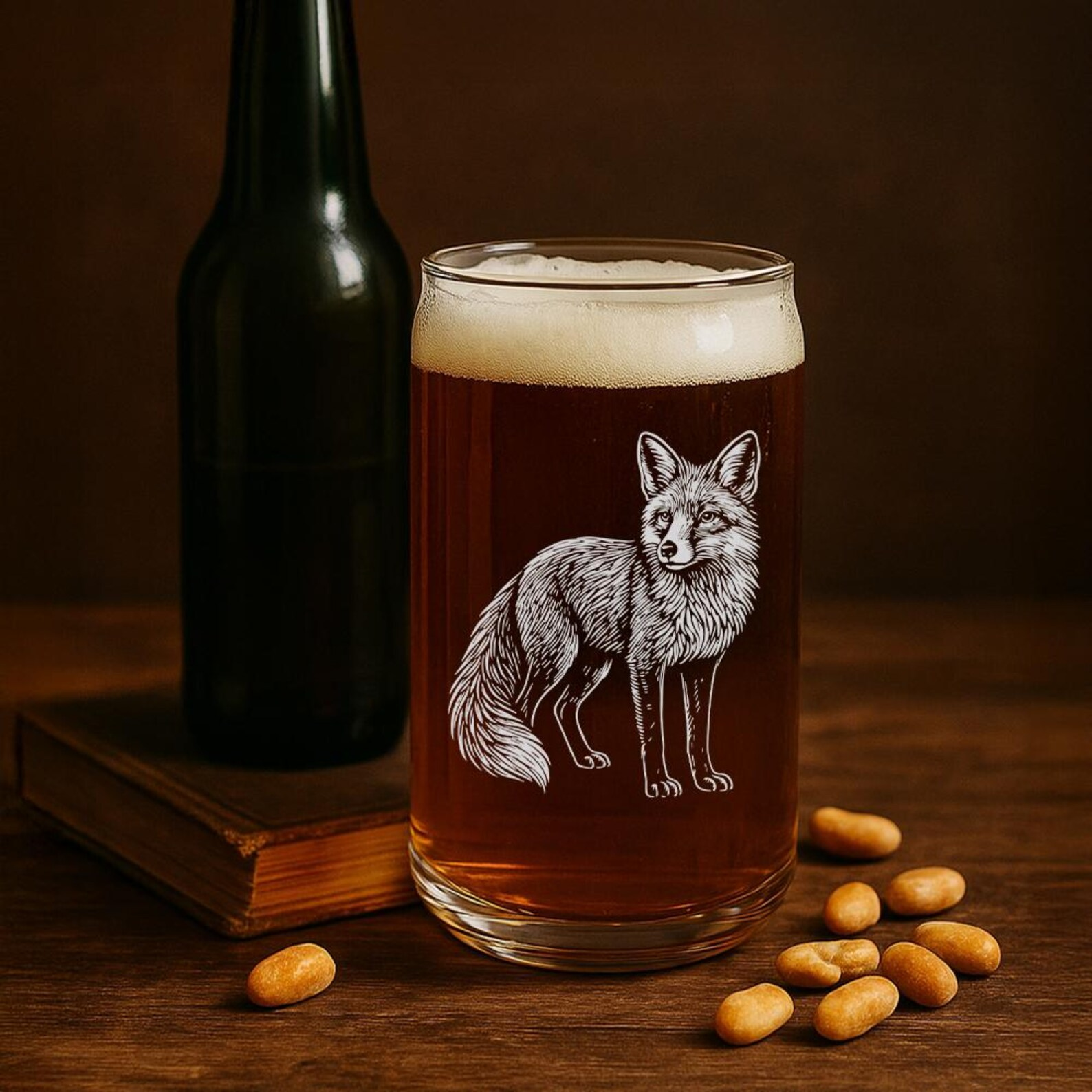 Fox Beer Can Glass | Etched Fox Silhouette Beer Can Glass | Gift for Animal Lovers