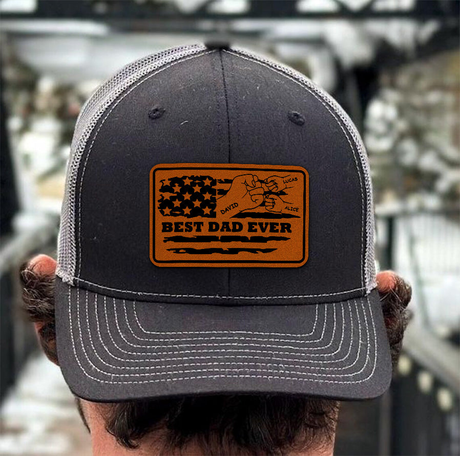 American Fist Bump Dad Leather Patch Hat – Patriotic Dad Trucker Hat – 4th of July Gift for Father – USA Flag Cap – Funny Dad Hat NGOC99NT14