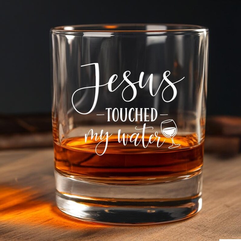 Jesus Touched My Water Whiskey Glass | Engraved Whiskey Glass | Best Gift For Friend