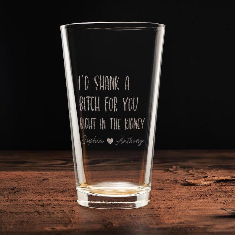 I'd Shank A Bitch For You Pint Glass | Custom Engraved Beer Glass | Gift For Friend