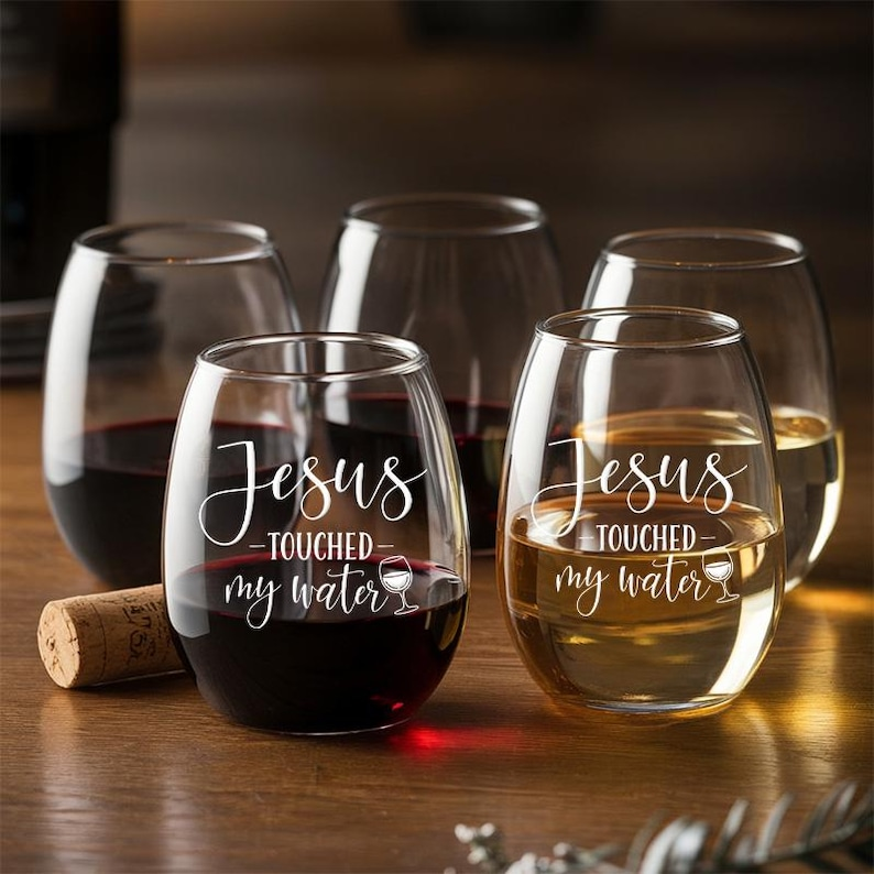 Jesus Touched My Water Wine Glass | Engraved Wỉne Glass | Gift For Friend