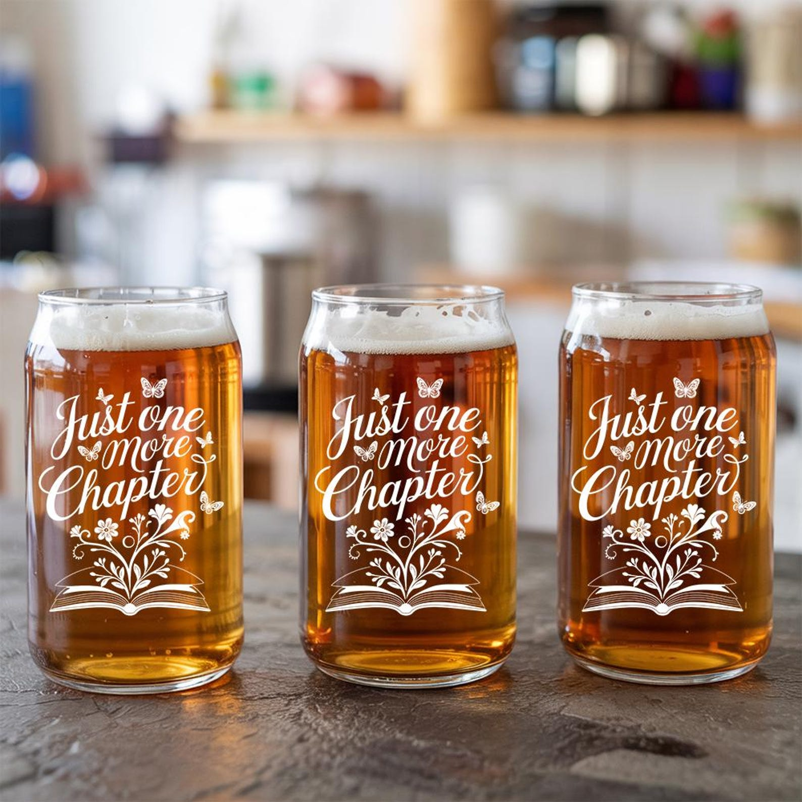 Just One More Chapter Book Beer Can Glass 16oz | Engraved Beer Can Glass | Gift For Friend