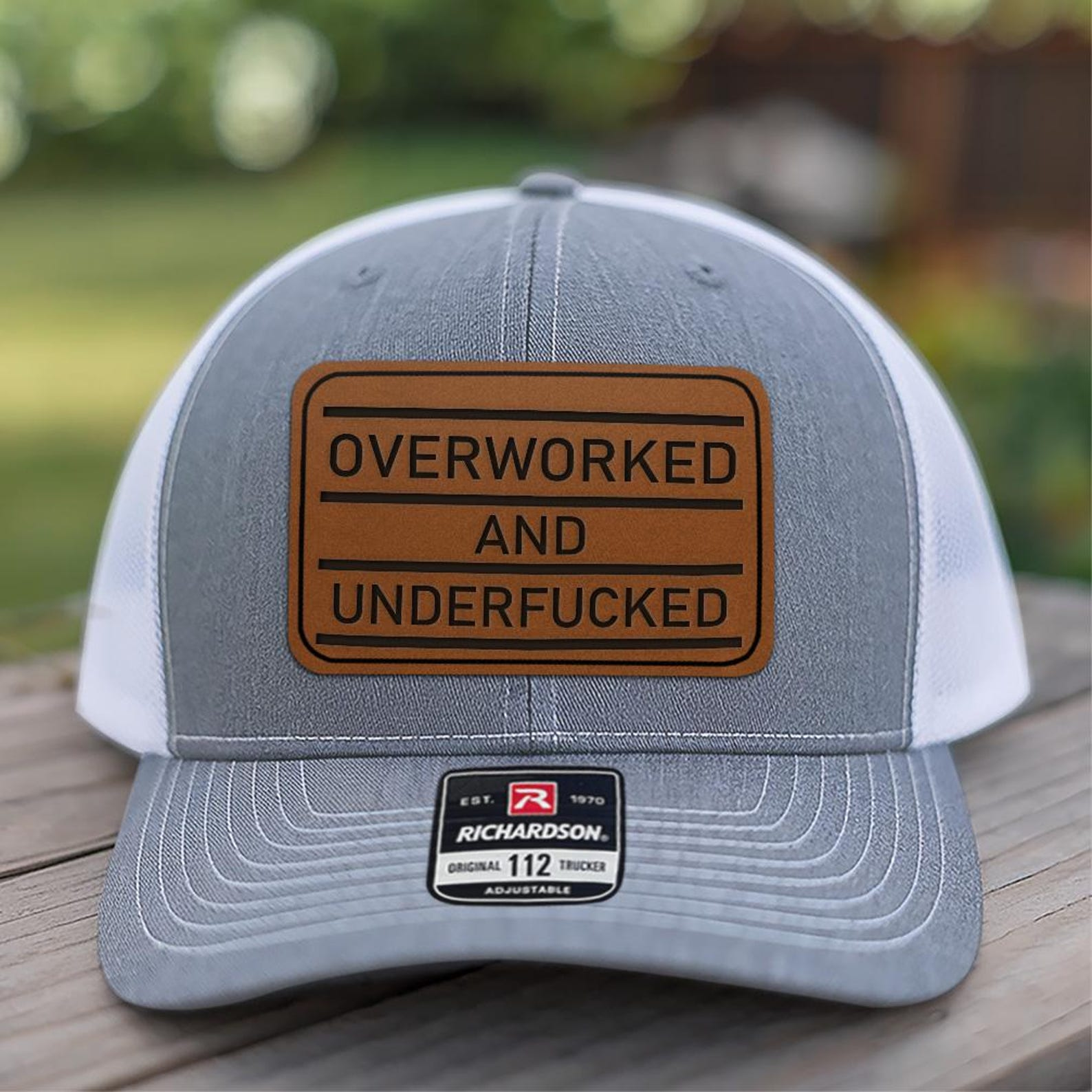 Overworked And Underf-cked Trucker Hat | Leather Patch Hat | Gift Idea For Friend