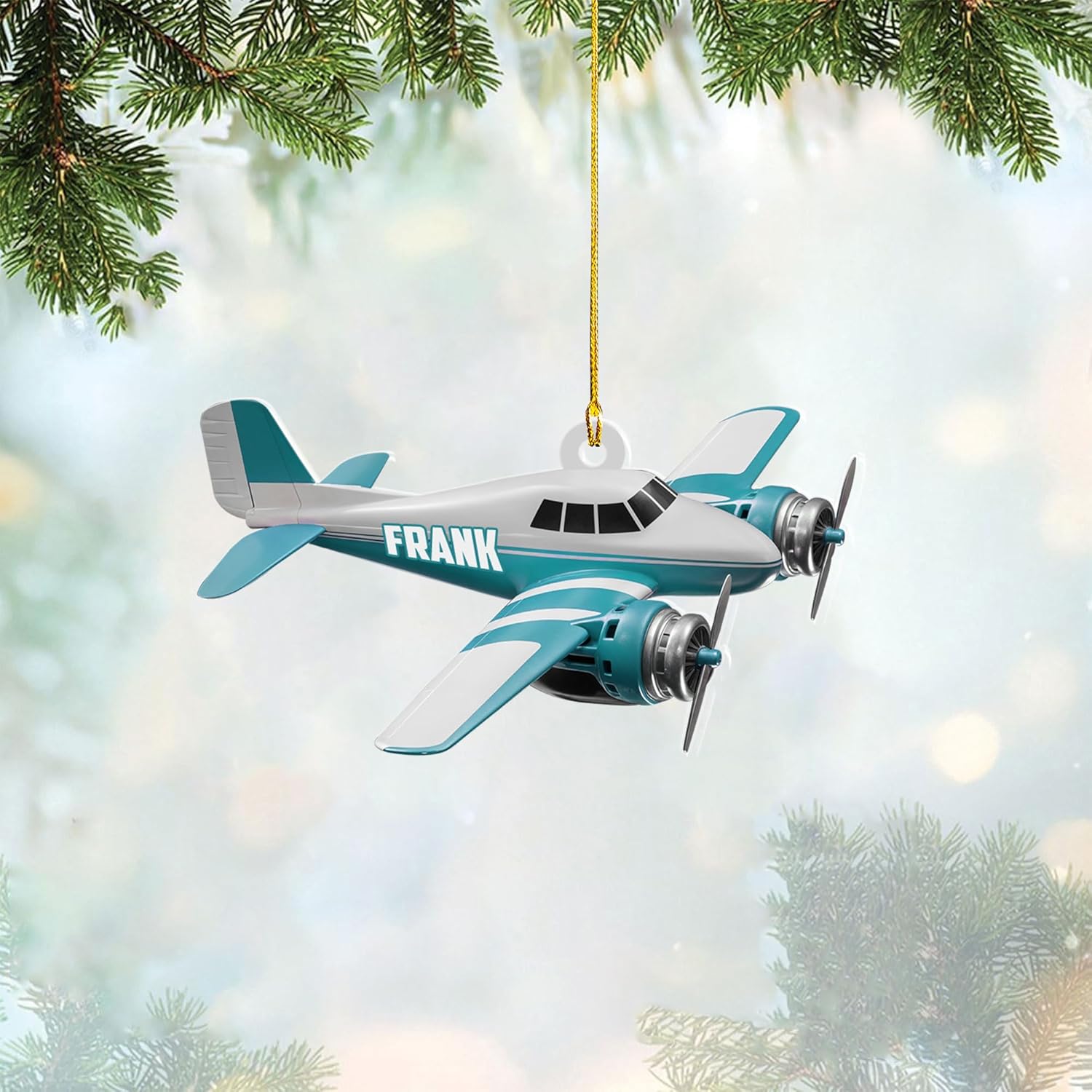 Personalized Twin Engine Airplane Pilot Christmas Ornament
