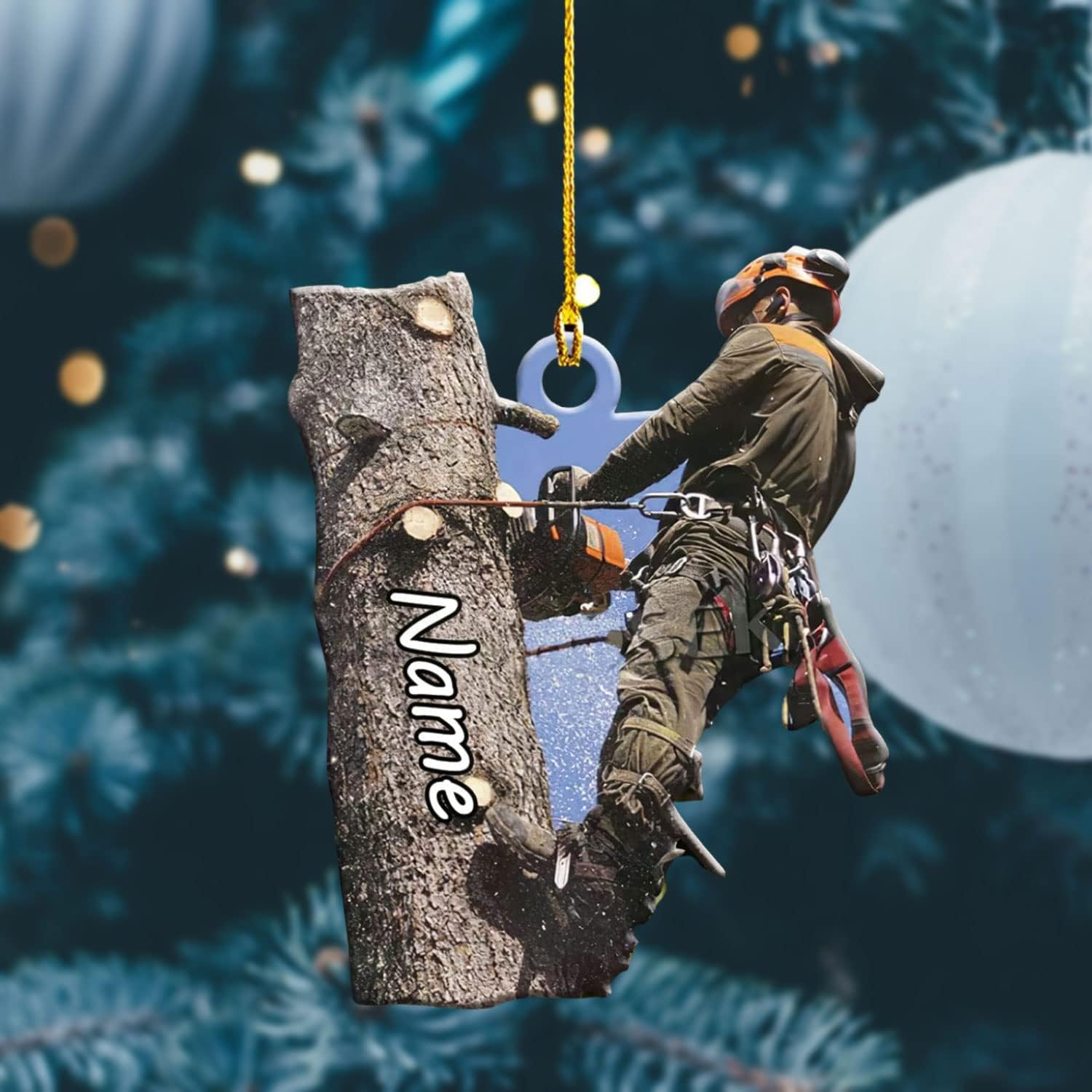 Personalized Arborist Ornament – Lumberjack Carpenter Christmas Ornament Style 2