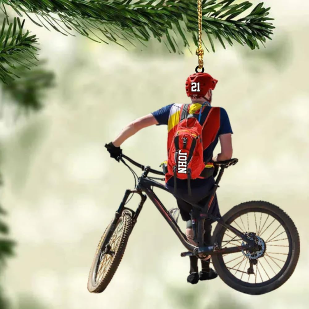 Personalized Bicycle Christmas Ornament – Custom Name Acrylic Cycling 2D Flat Ornament Gift for Bicycle Lovers TB4