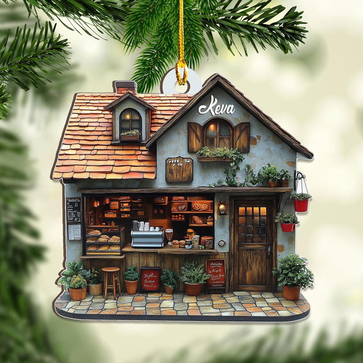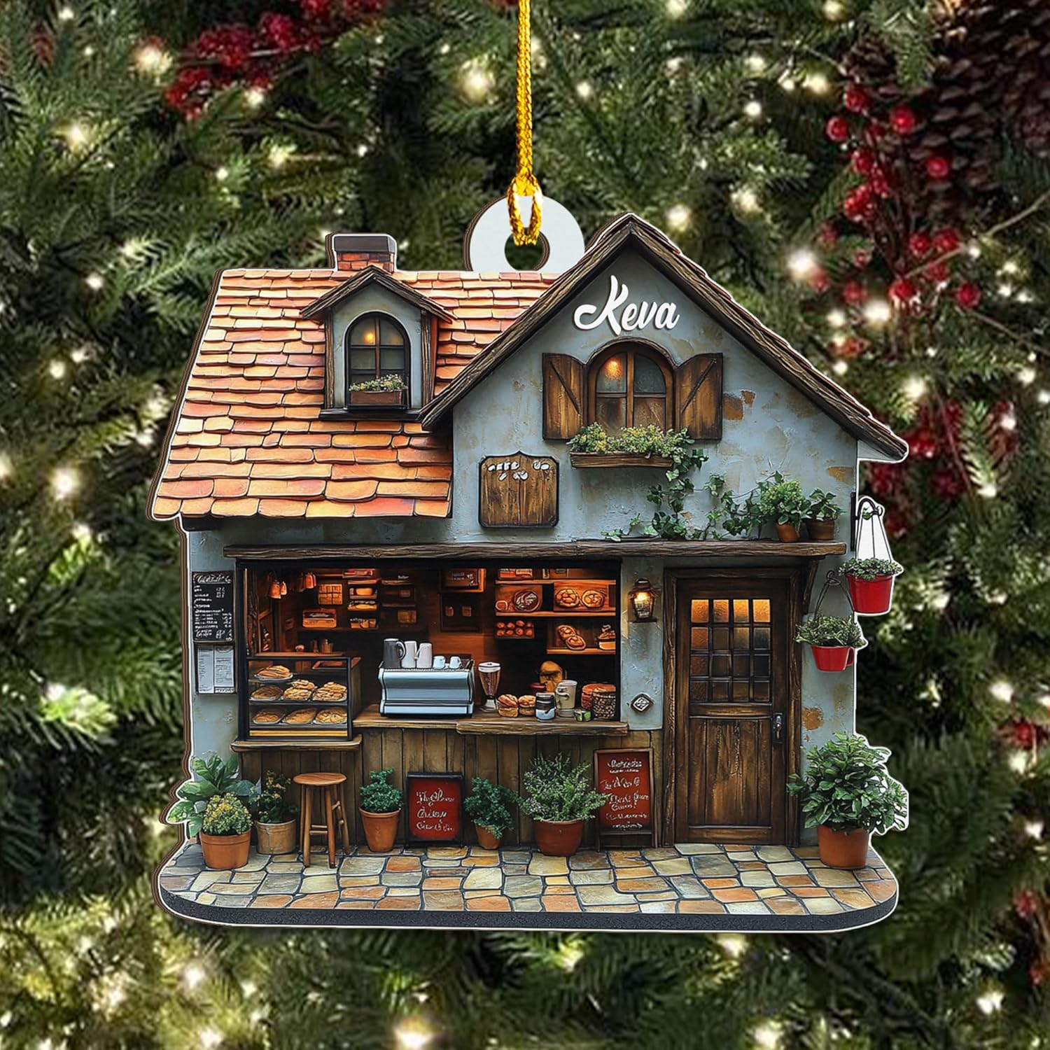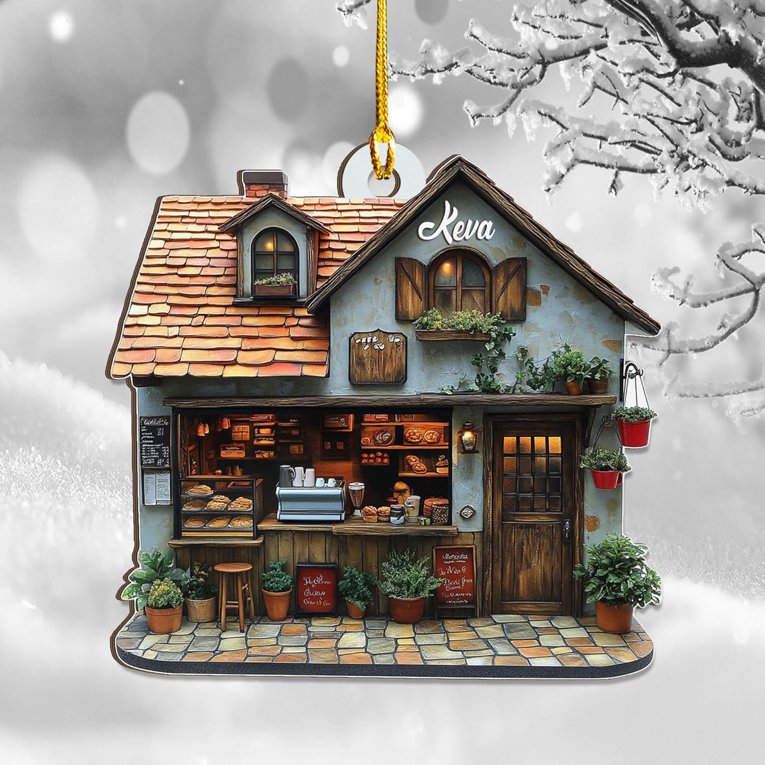 Personalized Coffee House Ornament – Unique Holiday Keepsake for Coffee Lover TC16