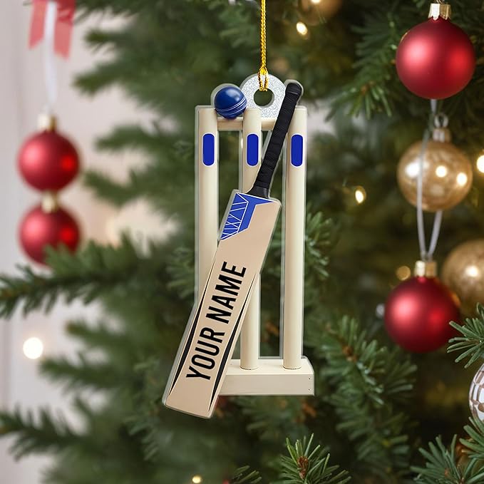 Personalized Cricket Christmas Ornament 2025, Custom Cricket Bat Ornament NO1