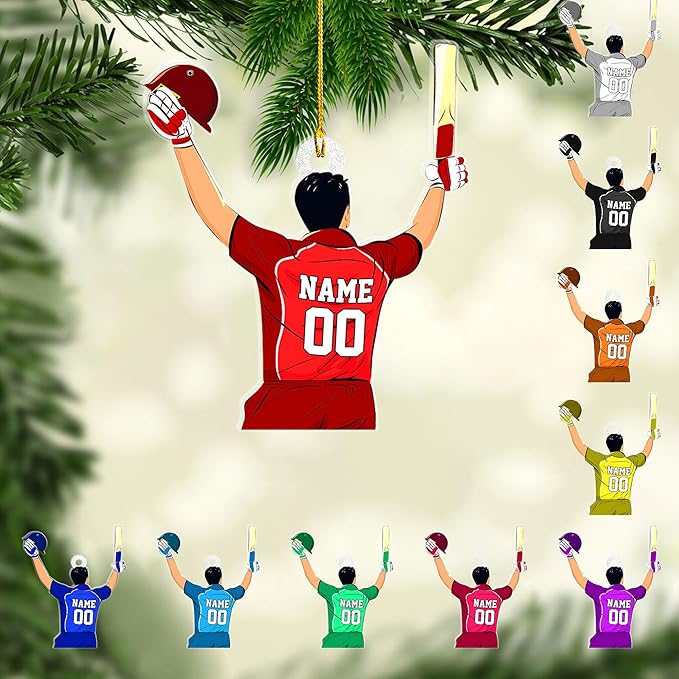 Personalized Cricket Christmas Ornament 2025, Custom Cricket Bat Ornament NO4