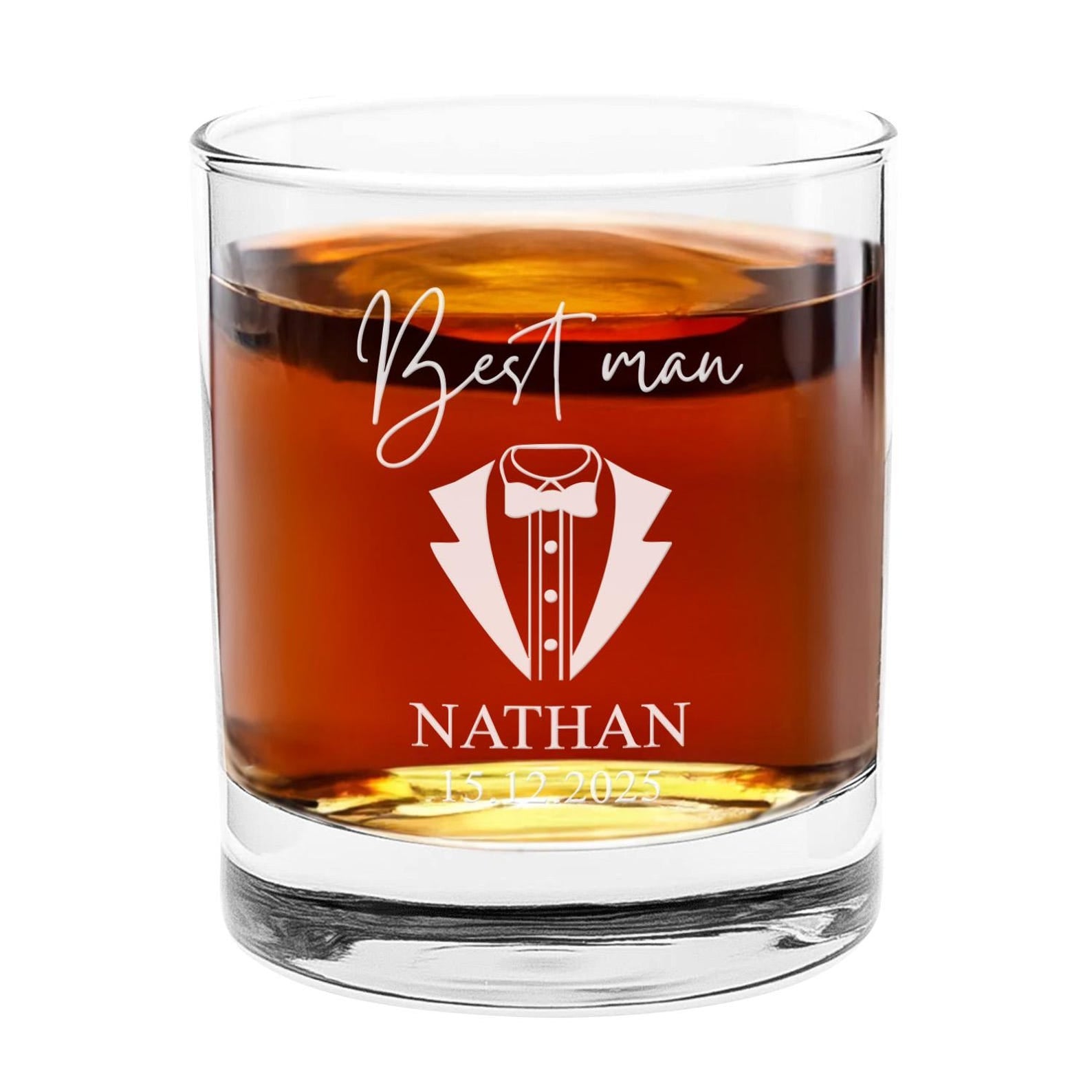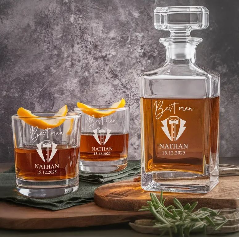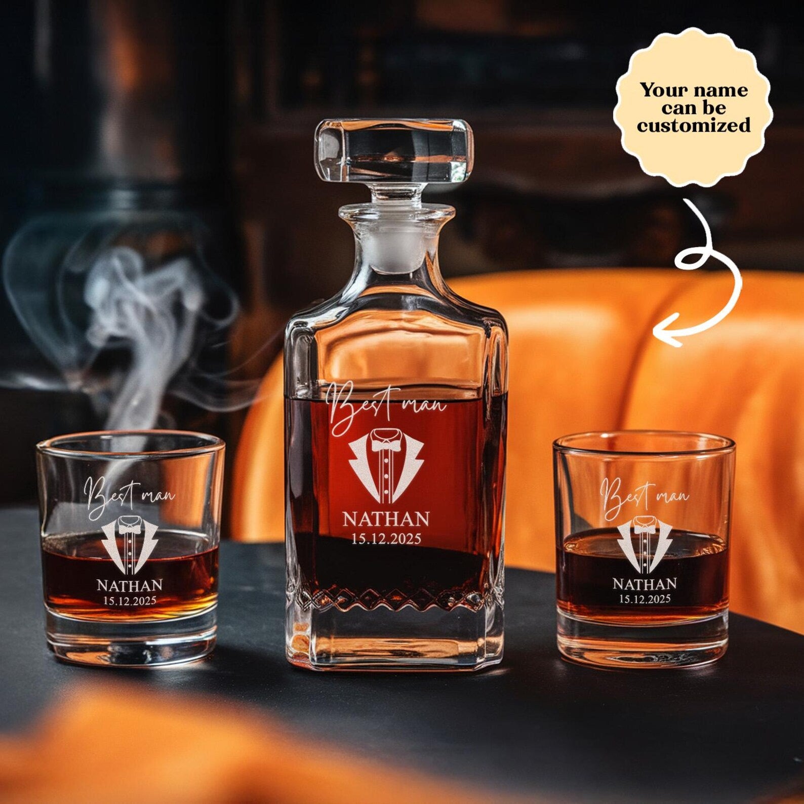 Personalized Custom Name Best Man Whiskey Glass And Decanter Set | Best Gift For Dad | Engraved Whiskey Glass and Decanter