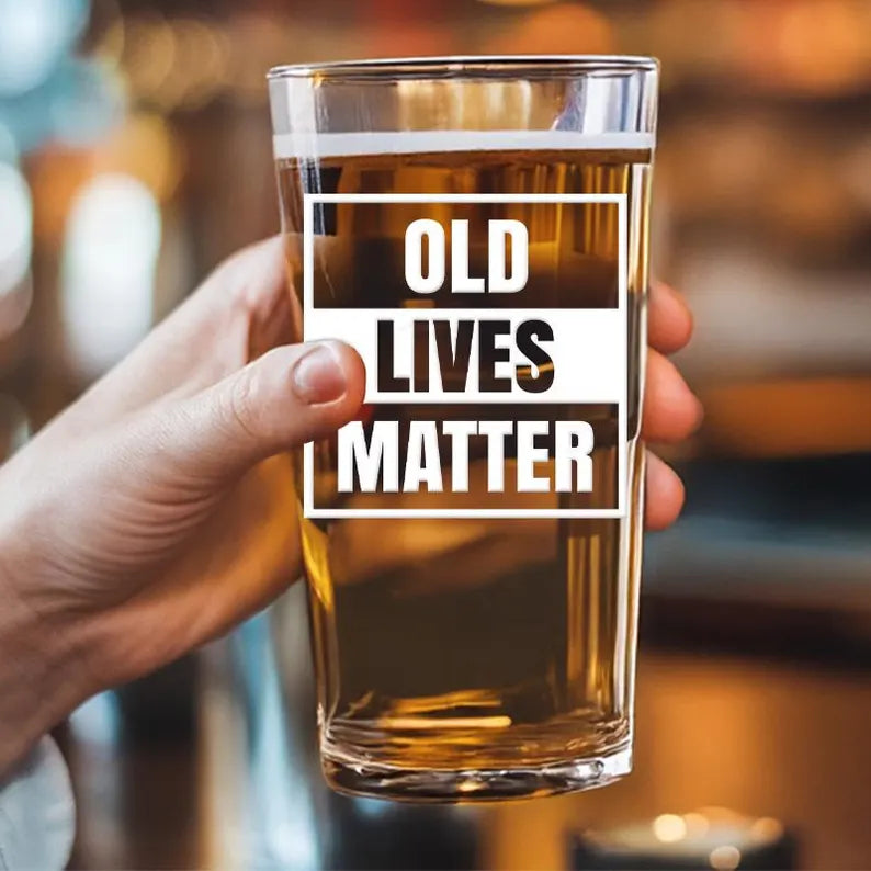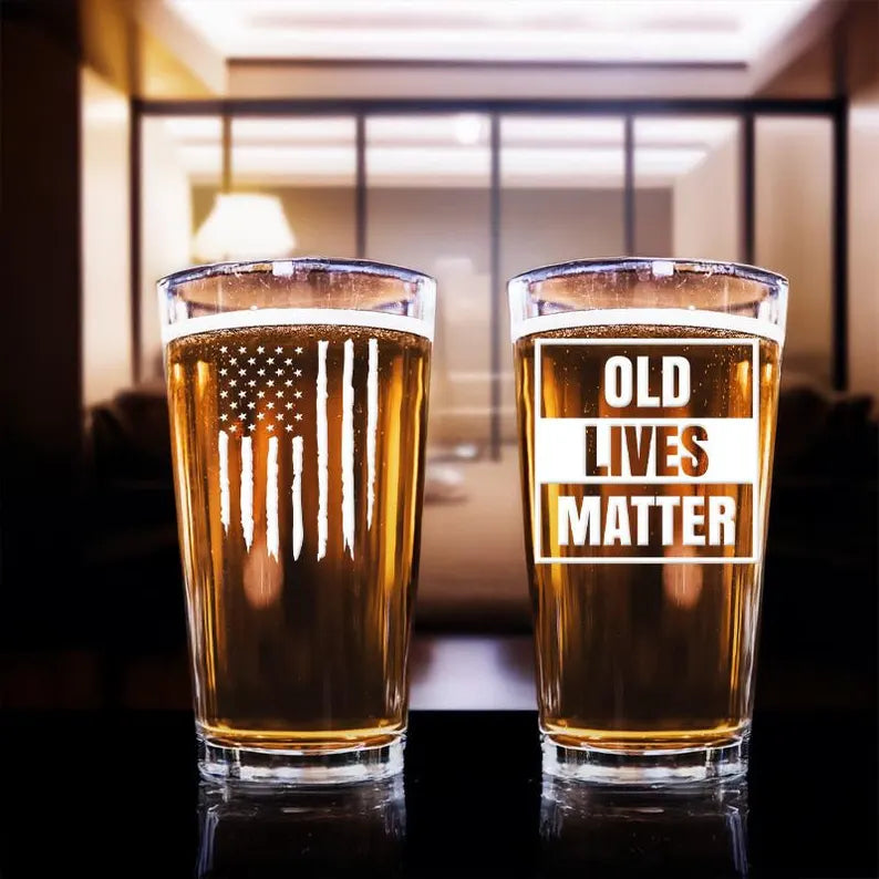Old Lives Matter American Flag Pint Glass | Funny Birthday Fathers Day Gift for Dad | Papa Old Man Glass | Beer Glass