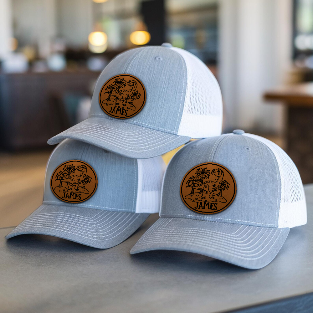 Personalized Dinosaur Kid Leather Patch Hat, Kids Custom Hats, Custom Infant Toddler Kids Youth Trucker Hat TNNK07