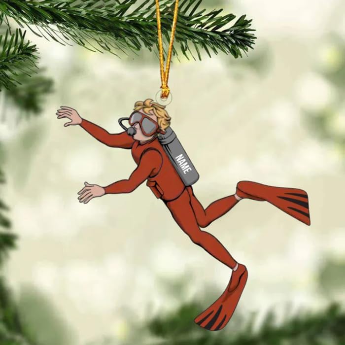 Personalized Diver Christmas Ornament – Custom Name Scuba Diving 2D Flat Acrylic Ornament, Gift for Divers and Ocean Lovers, Sport Holiday Decoration TSD2