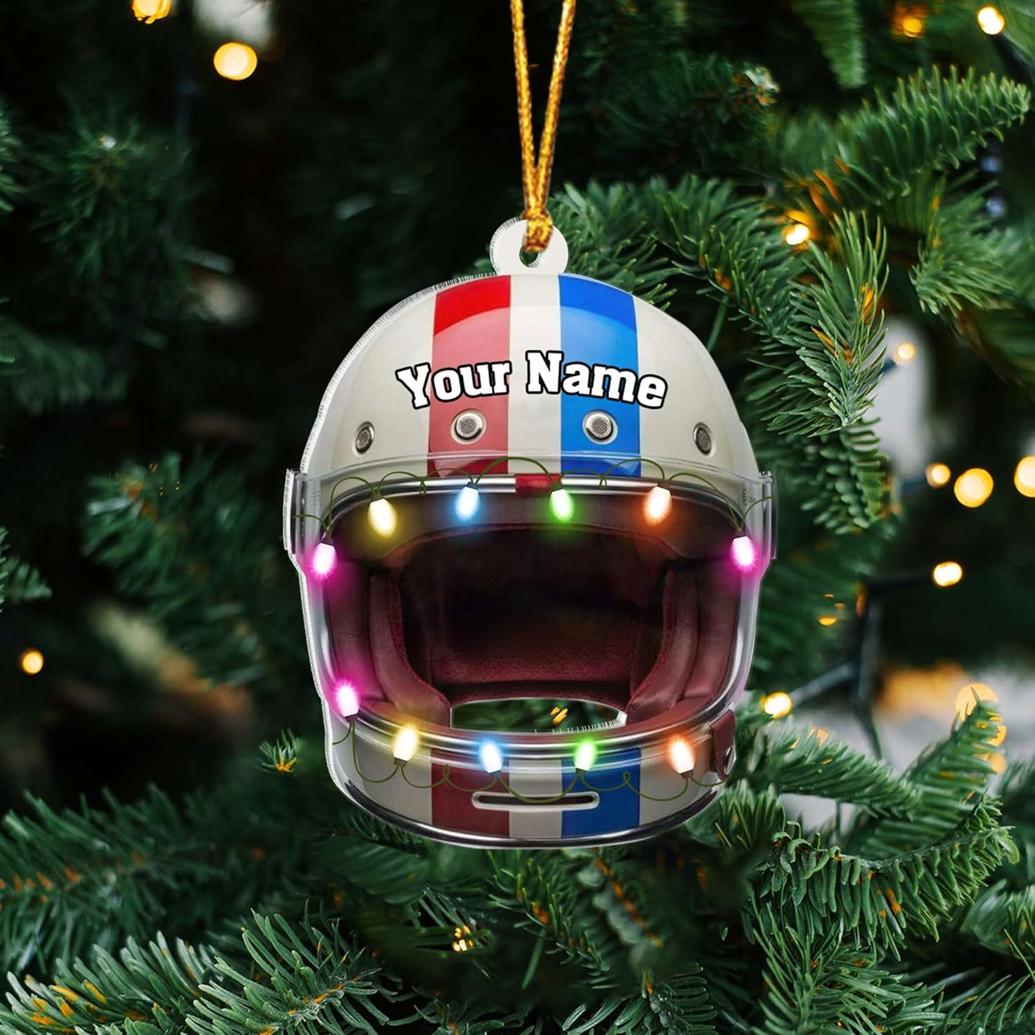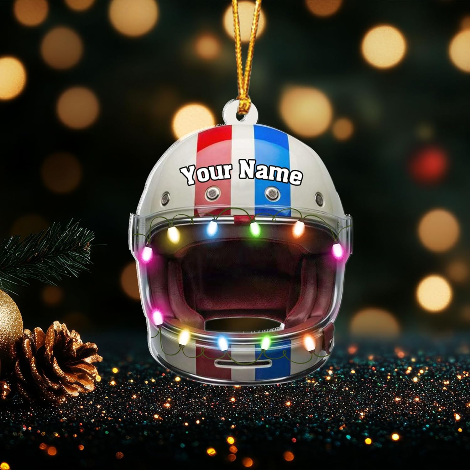 Personalized Helmet Drag Racing Christmas Ornament - Custom Acrylic Hot Rod Engine Gift, Racecar Holiday Tree Keepsake TDR11