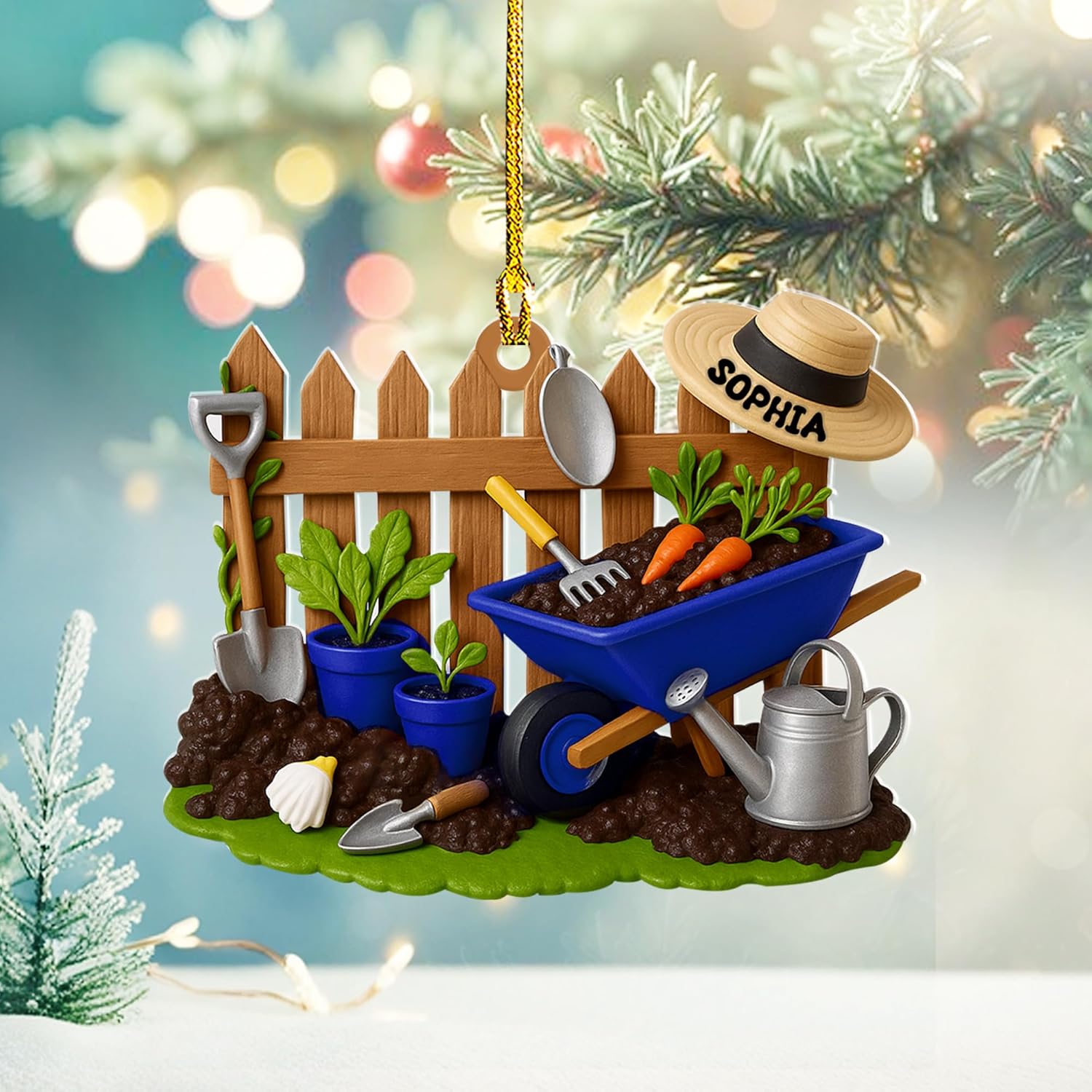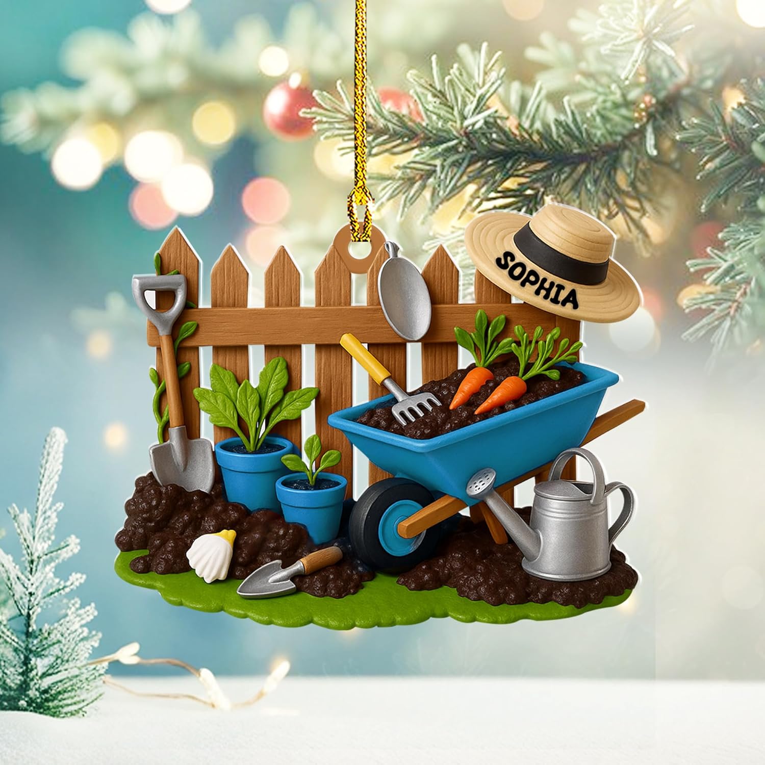 Personalized Gardening Acrylic Ornament – Custom Name Garden Tools Christmas Tree Decoration for Gardeners & Plant Lovers TG5