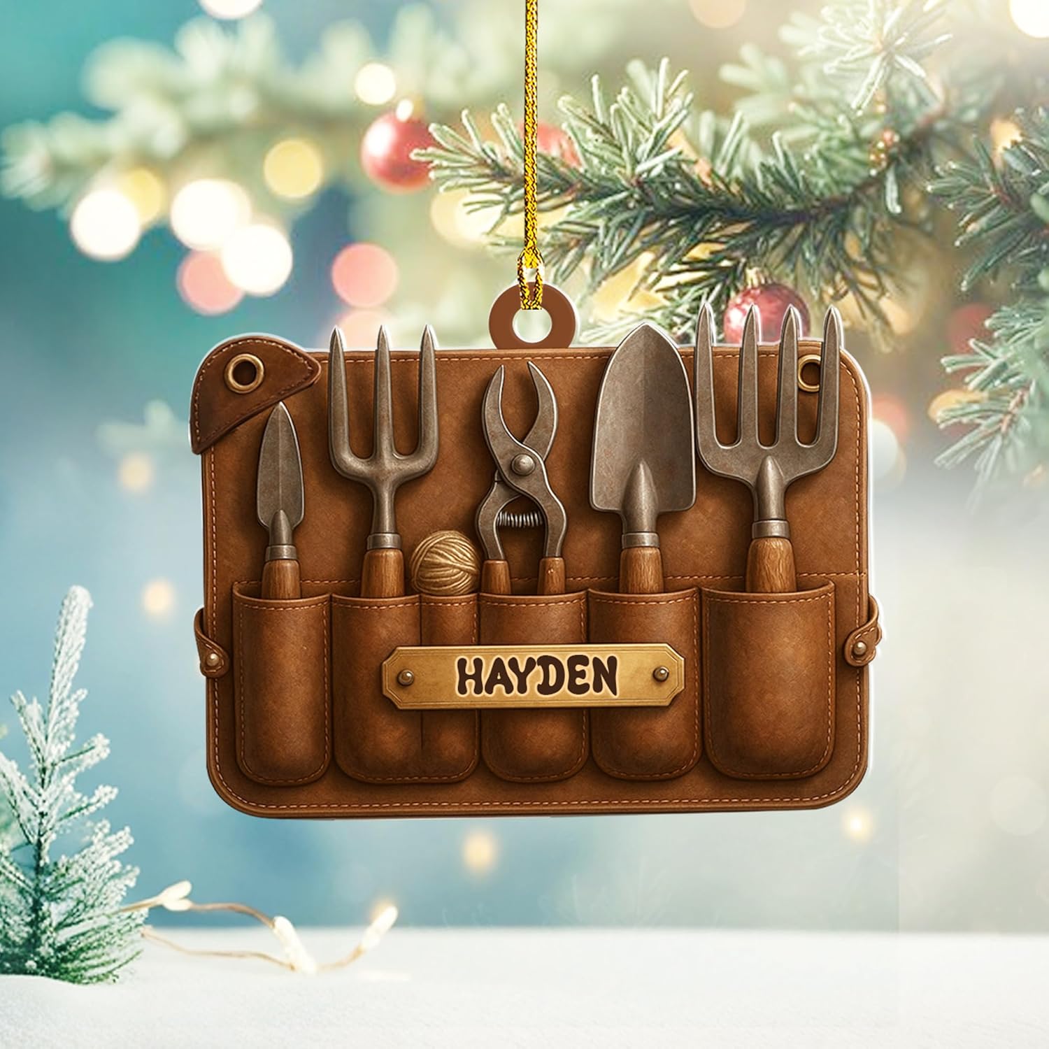 Personalized Gardening Acrylic Ornament – Custom Name Garden Tools Christmas Tree Decoration for Gardeners & Plant Lovers TG6
