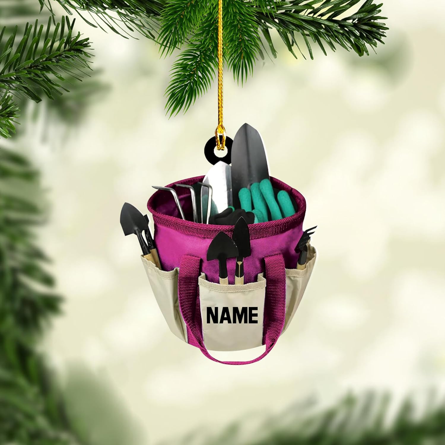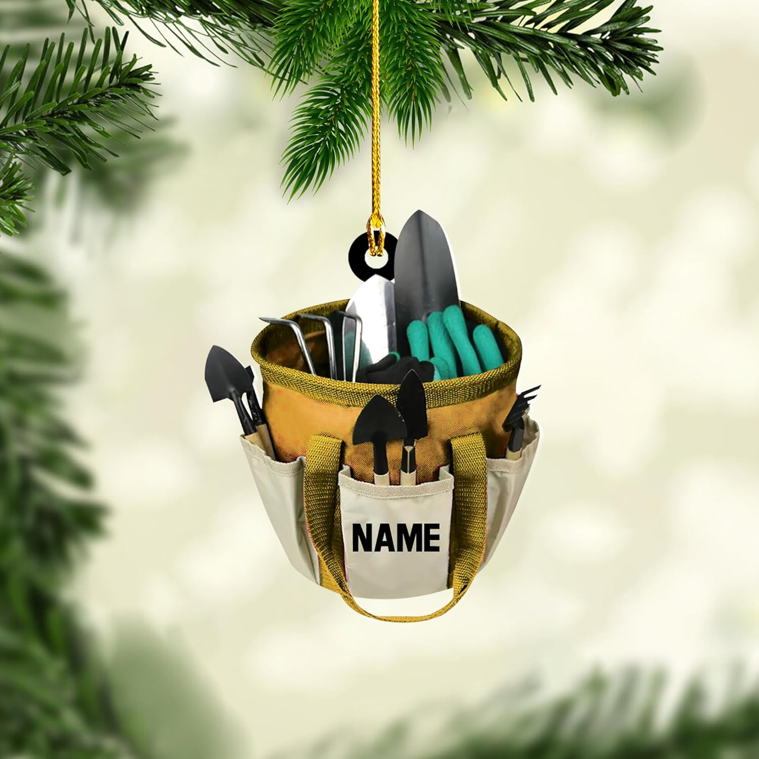 Personalized Gardening Acrylic Ornament – Custom Name Garden Tools Christmas Tree Decoration for Gardeners & Plant Lovers TG9