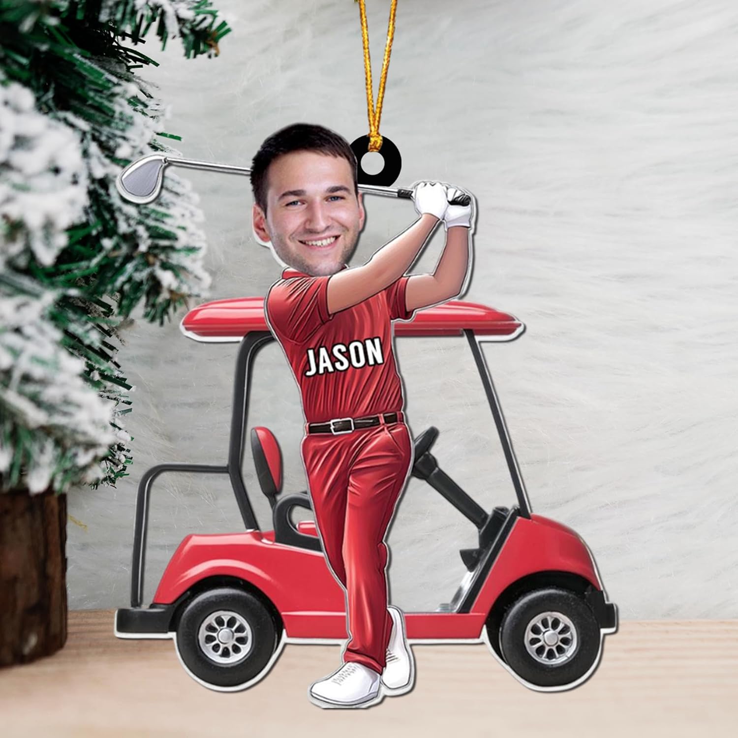 Custom Face and Name Golf Cart Ornament - Golf Player Christmas Ornament