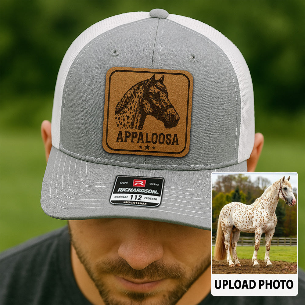 Personalized Horse Photo Leather Patch Hat | Custom Pet Photo Trucker Hat | Horse Farm Lovers Gift THUC99P14