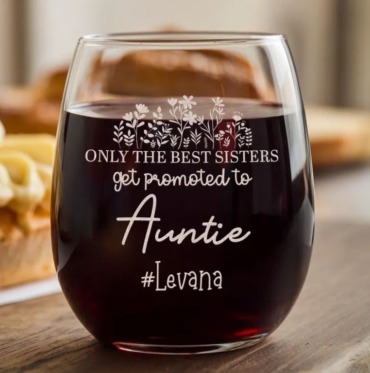 Personalized Promoted To Auntie Wine Glass | New Auntie Gifts | Engraved Wine Glass