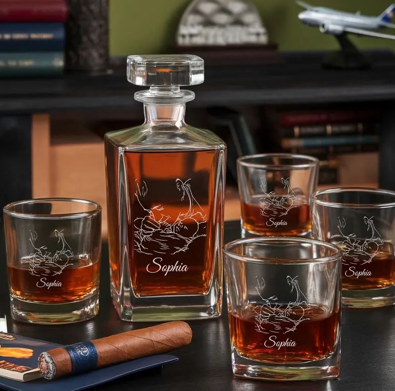Upgrade your home bar or surprise a loved one with our custom-engraved whiskey glass and decanter sets. Made from premium glass and precision-engraved, these pieces make the perfect personalized gift for whiskey lovers, bourbon enthusiasts, and special occasions like birthdays, weddings, anniversaries, and Father’s Day.