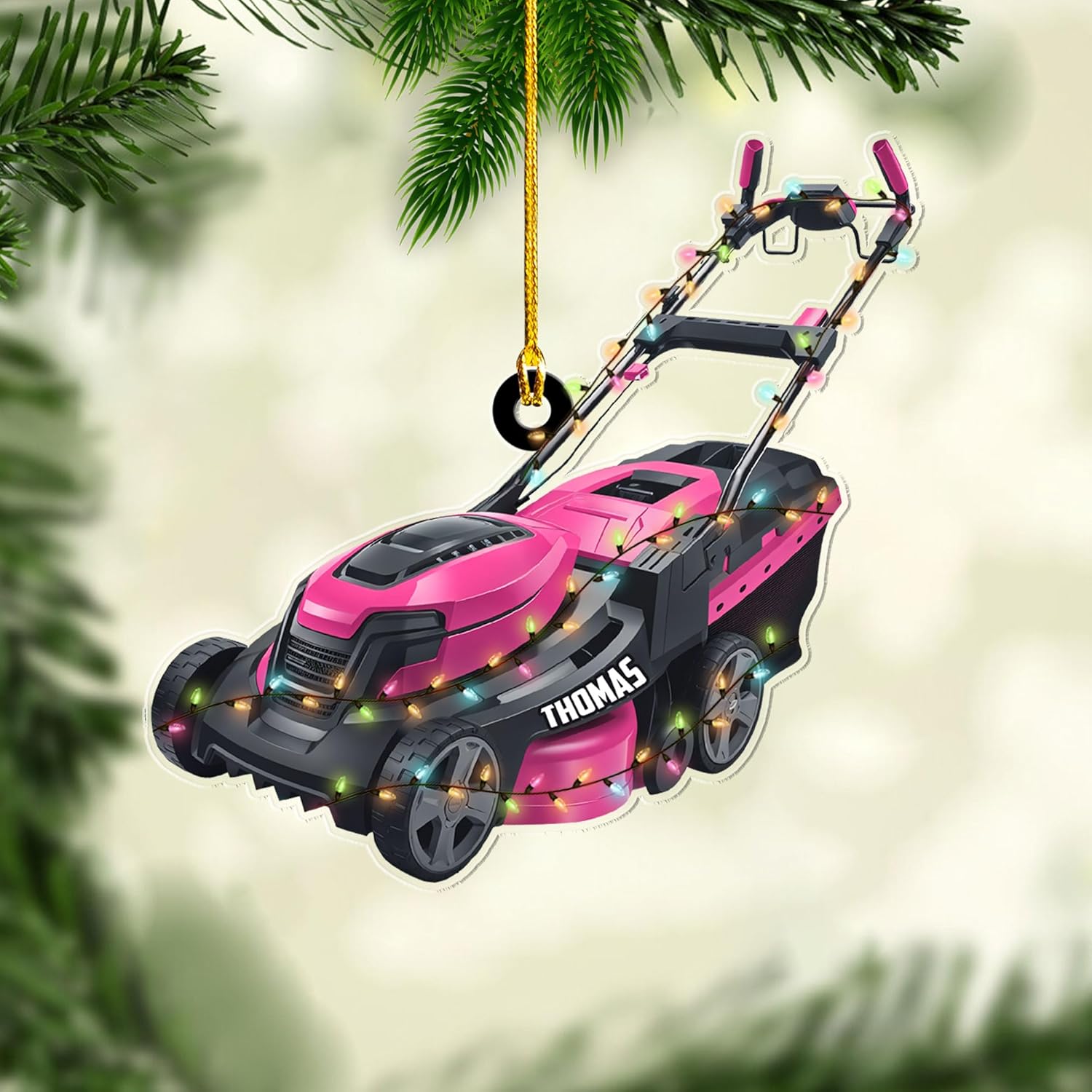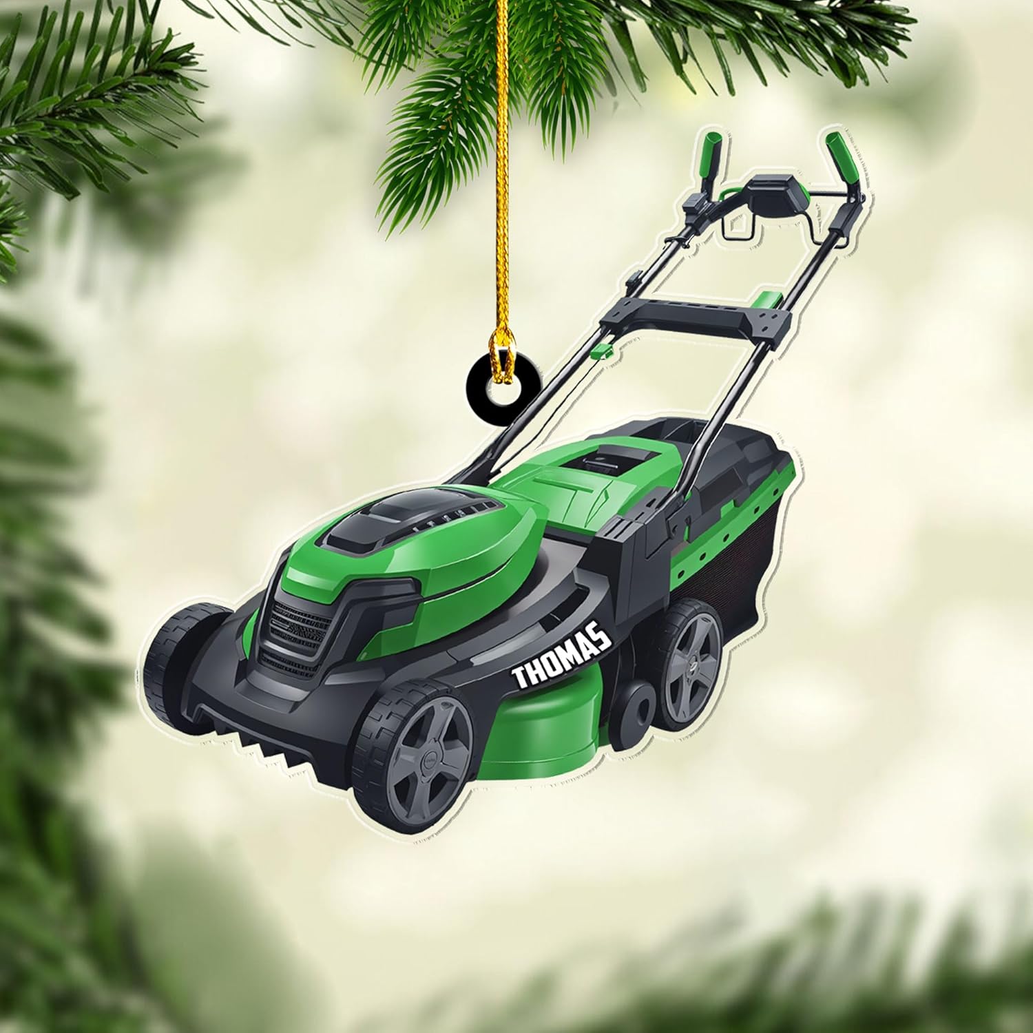 Personalized Lawn Mower Christmas Ornament | Custom Name Gardening Holiday Keepsake Gift for Gardeners & Lawn Care Workers TG61