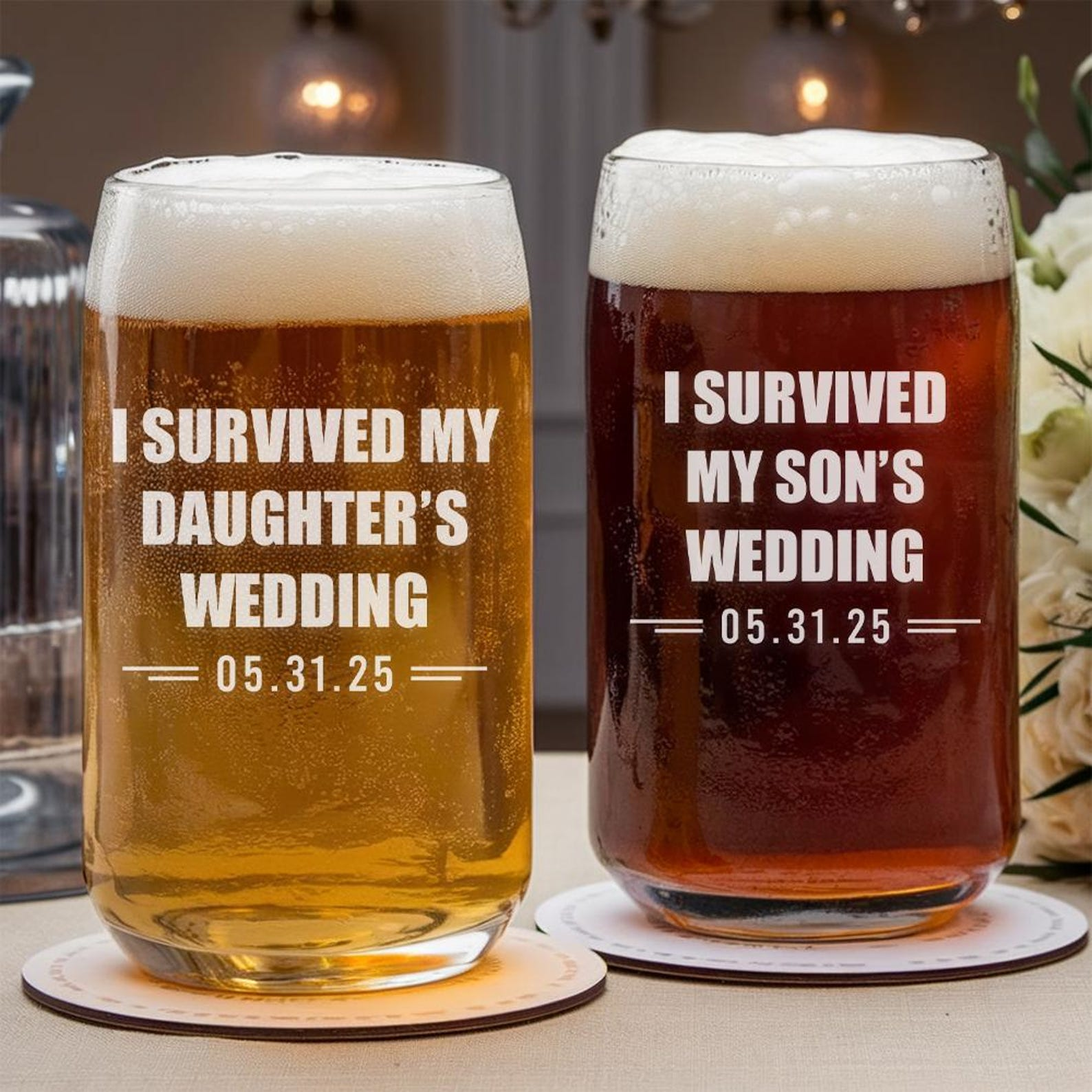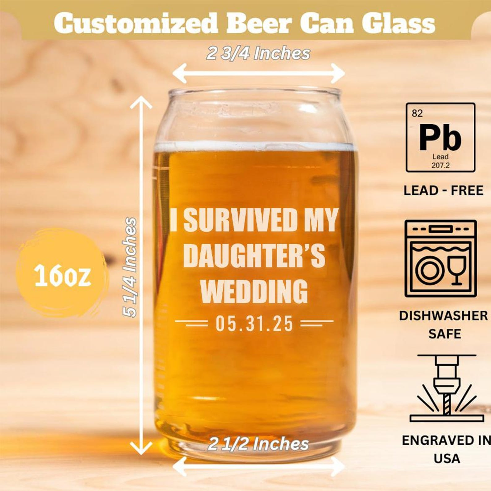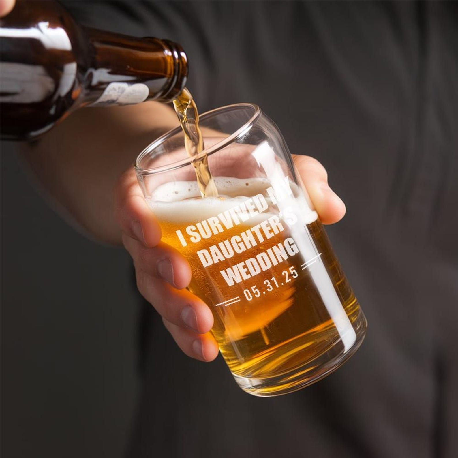 Personalized I Survived My Daughter’s Wedding Beer Can Glass | Custom Wedding Glasses | Funny Father Of The Bride Gift