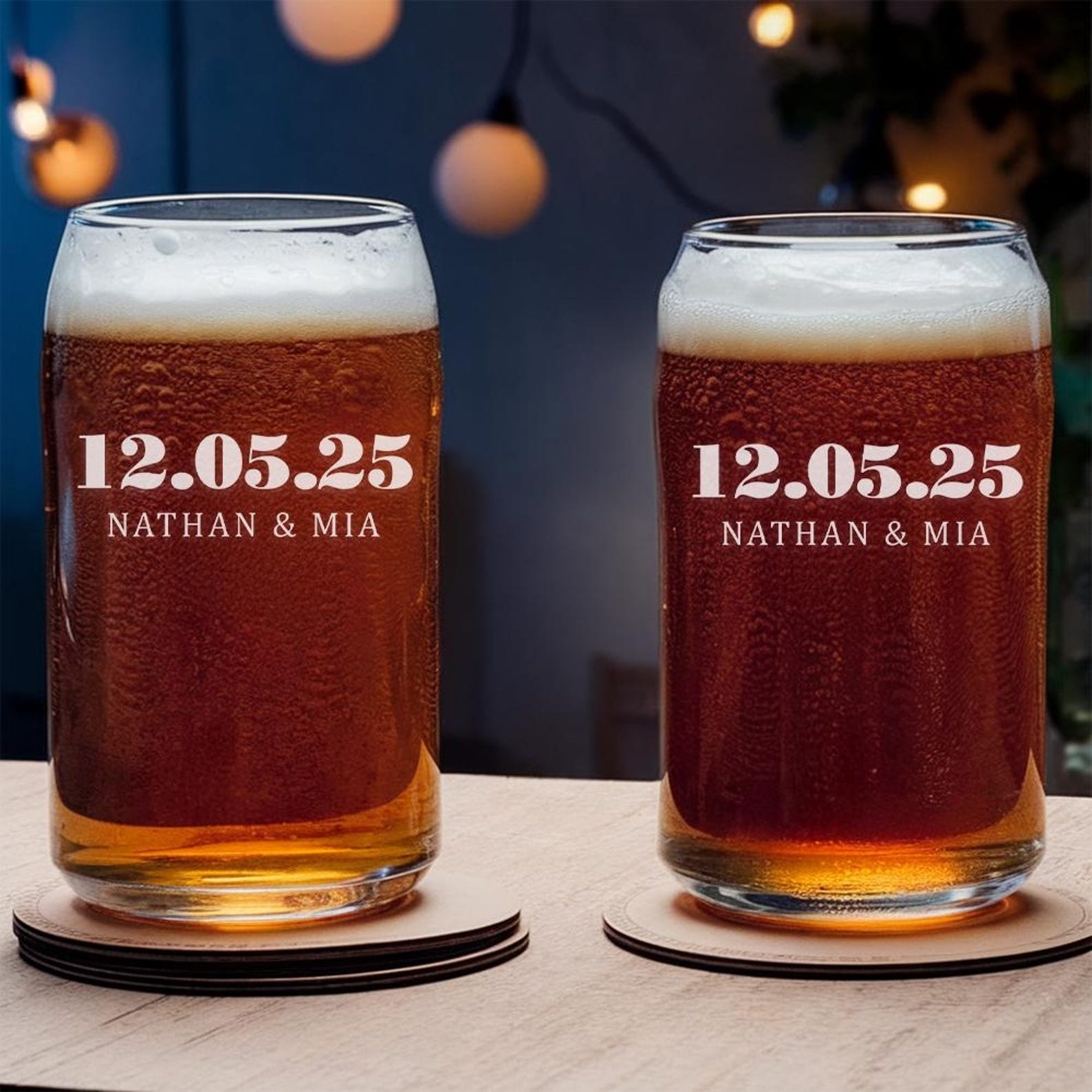 Personalized Wedding Date Beer Can Glass | Custom Name And Date Wedding Glasses | Gift For Couple