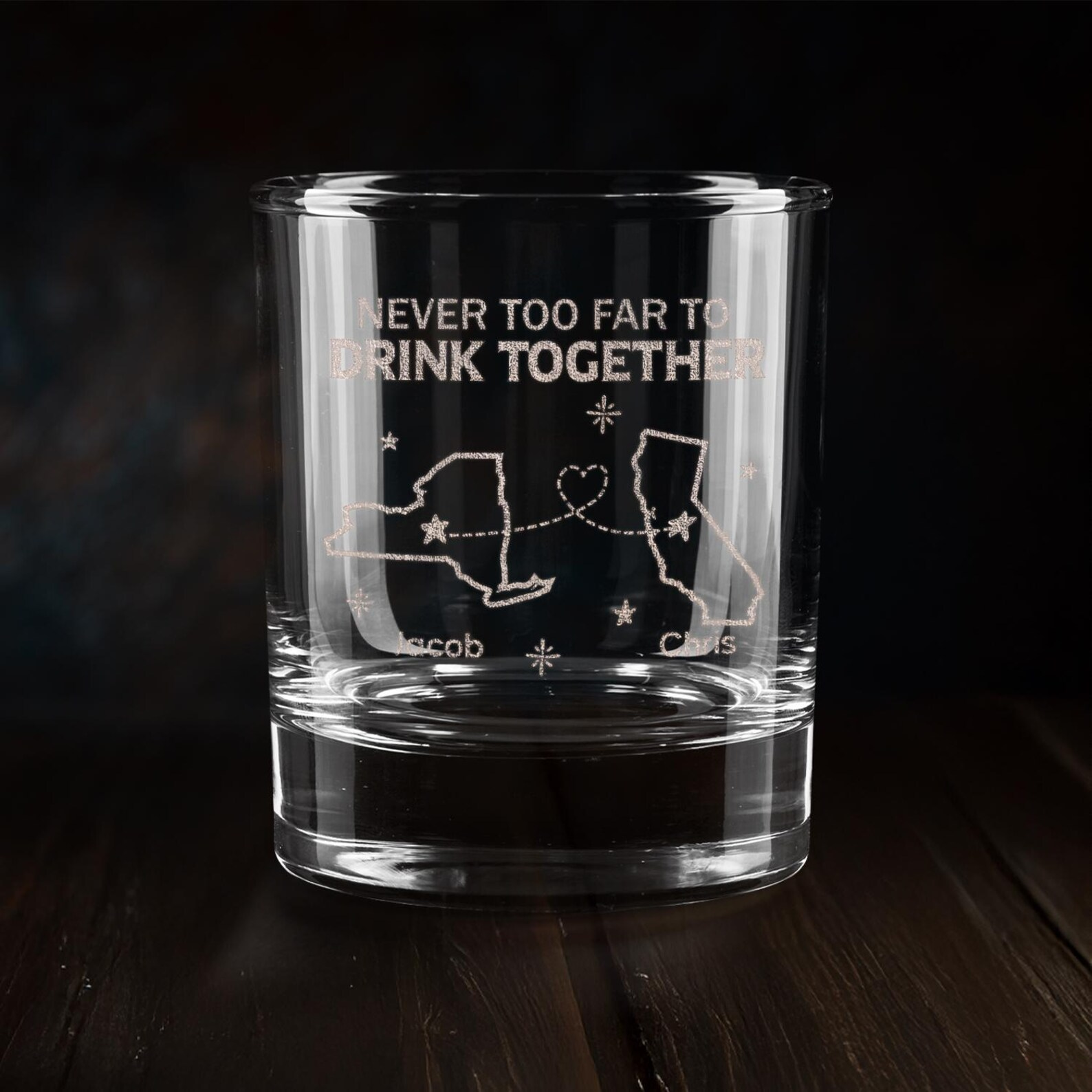 Personalized Never Too Far To Drink Together Whiskey Glass | Gift For Friends