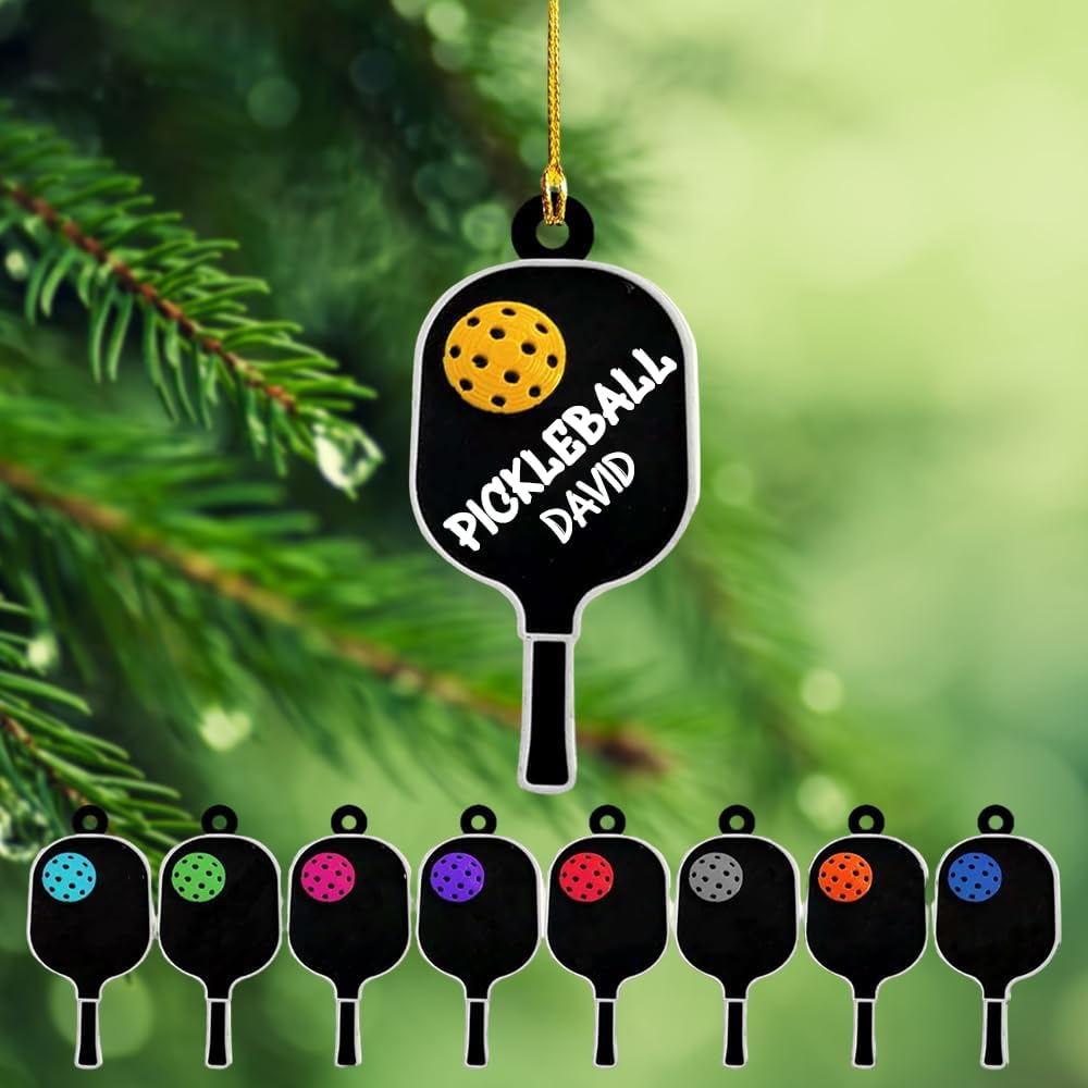 Custom Name Pickleball Ornament – Paddle and Ball Christmas Ornament Style 2