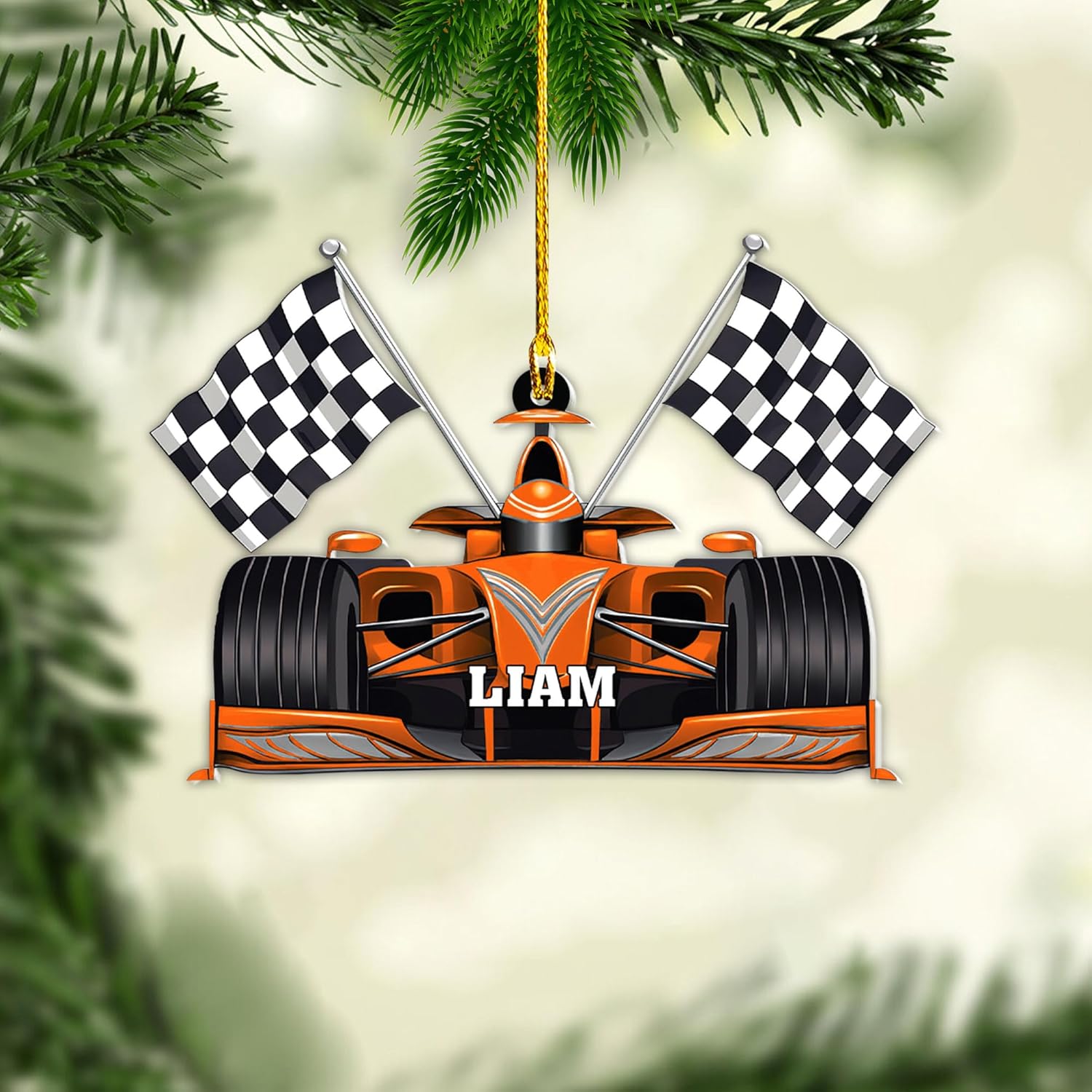 Personalized Racing Car Christmas Ornament – Custom Name Acrylic Race Car Ornament, Driver Gift, Motorsport Holiday Decoration, Car Lover Keepsake TR4