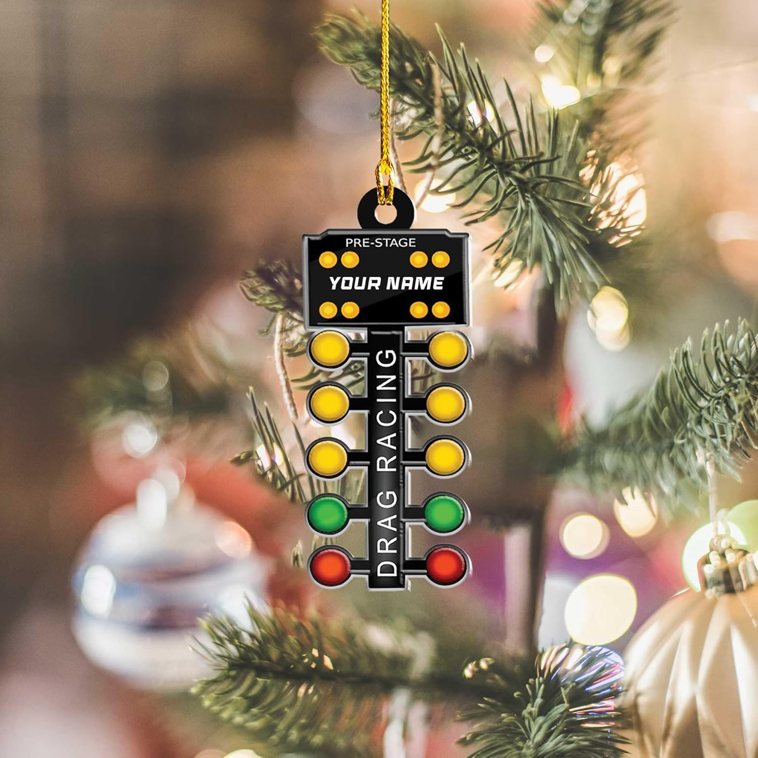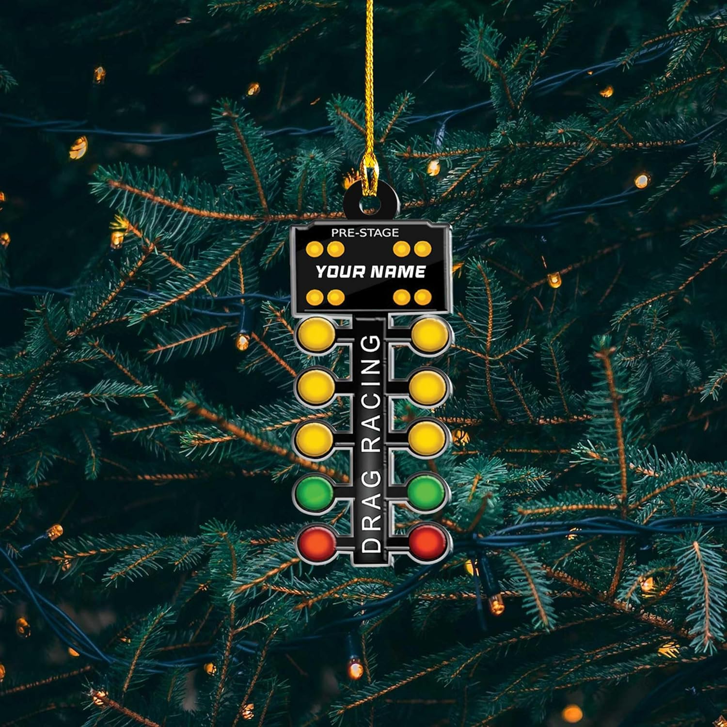 Personalized Racing Car Ornament – Custom Acrylic Drag Racing Christmas Decoration, Gift for Car Lovers and Drivers TR32