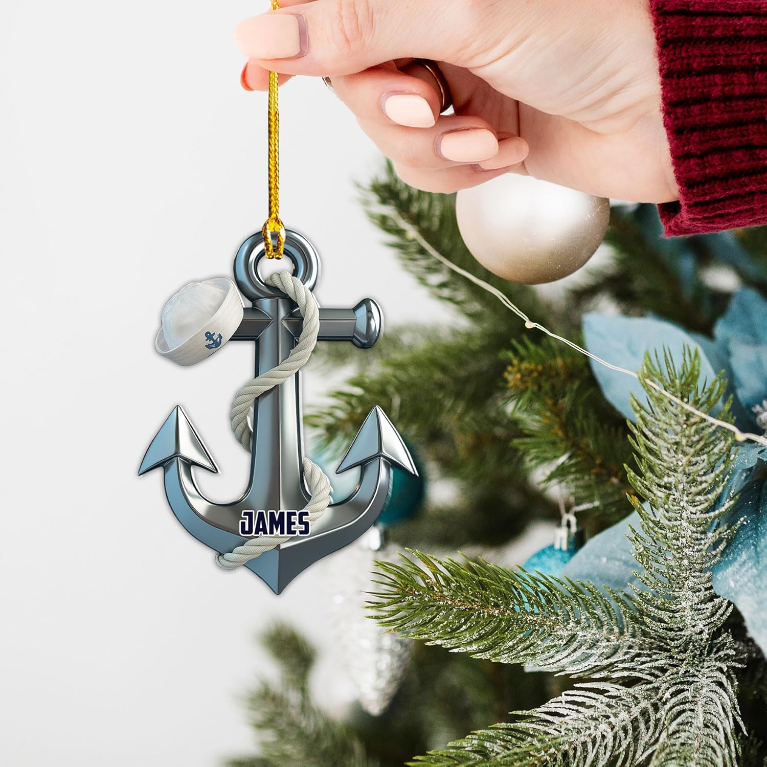Personalized Sailor Ornament – Custom Captain Sailor Acrylic Ornament, Unique Sailing Glass Keepsake, Navy Captain Holiday Gift for Sailors TS14