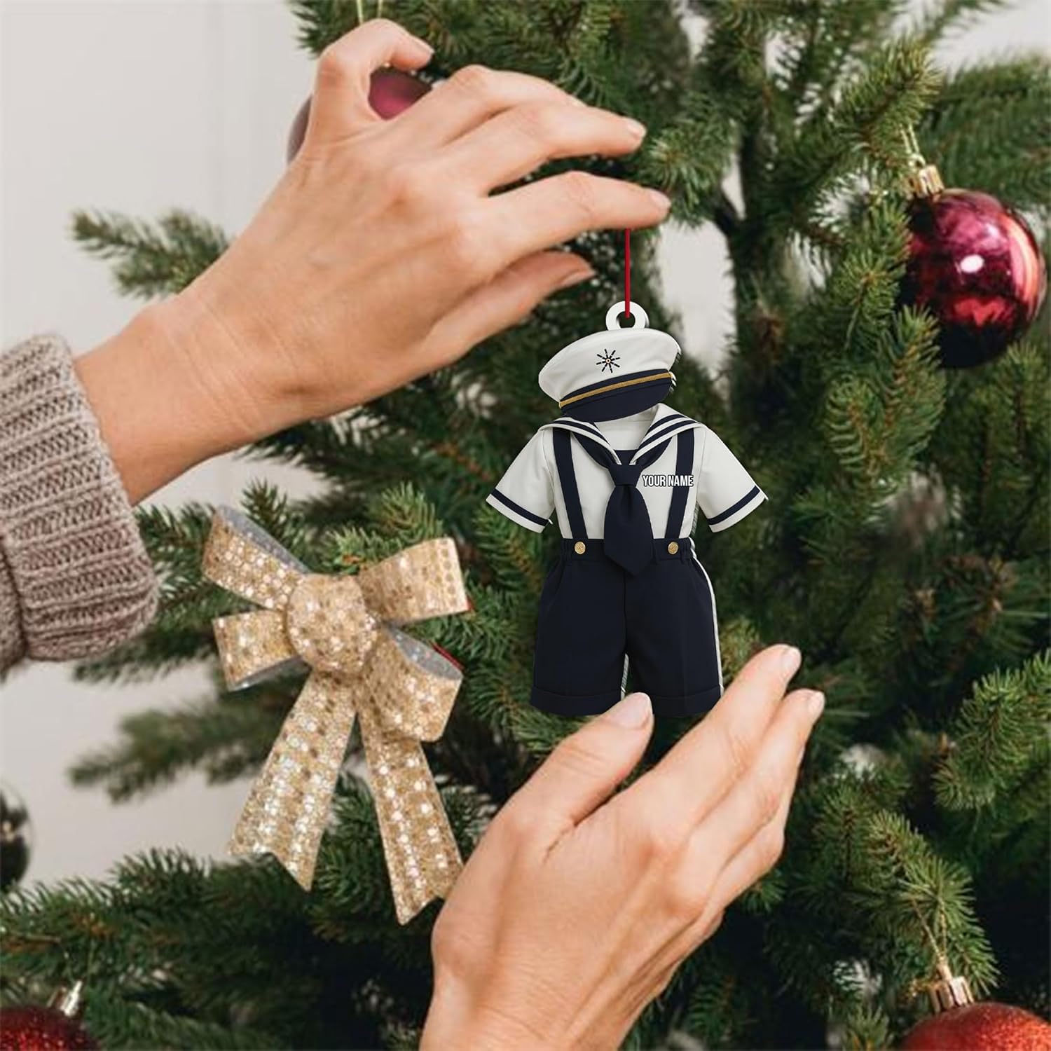 Personalized Sailor Ornament – Custom Captain Sailor Acrylic Ornament, Unique Sailing Glass Keepsake, Navy Captain Holiday Gift for Sailors TS19