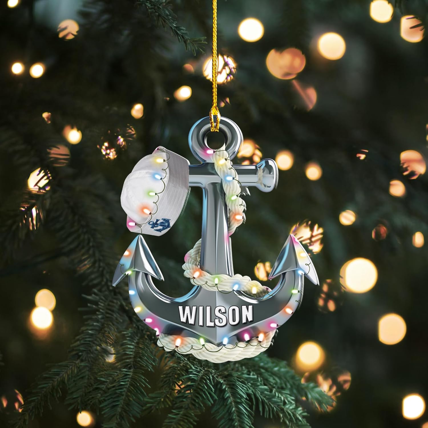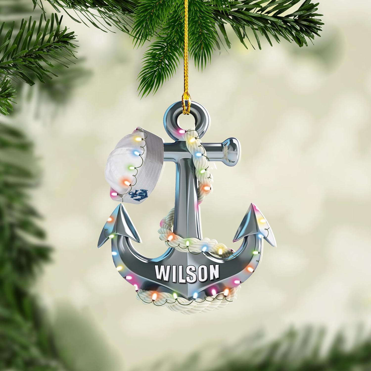 Personalized Sailor Ornament – Custom Captain Sailor Acrylic Ornament, Unique Sailing Glass Keepsake, Navy Captain Holiday Gift for Sailors TS8