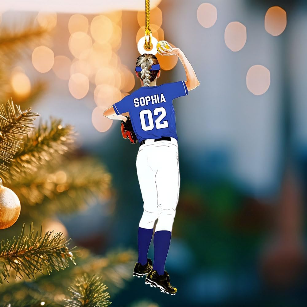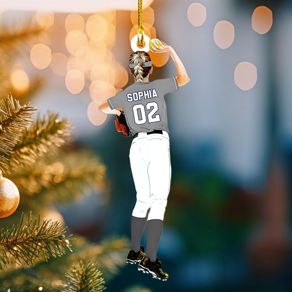 Personalized Softball Ornament – Custom Sports Christmas Tree C11