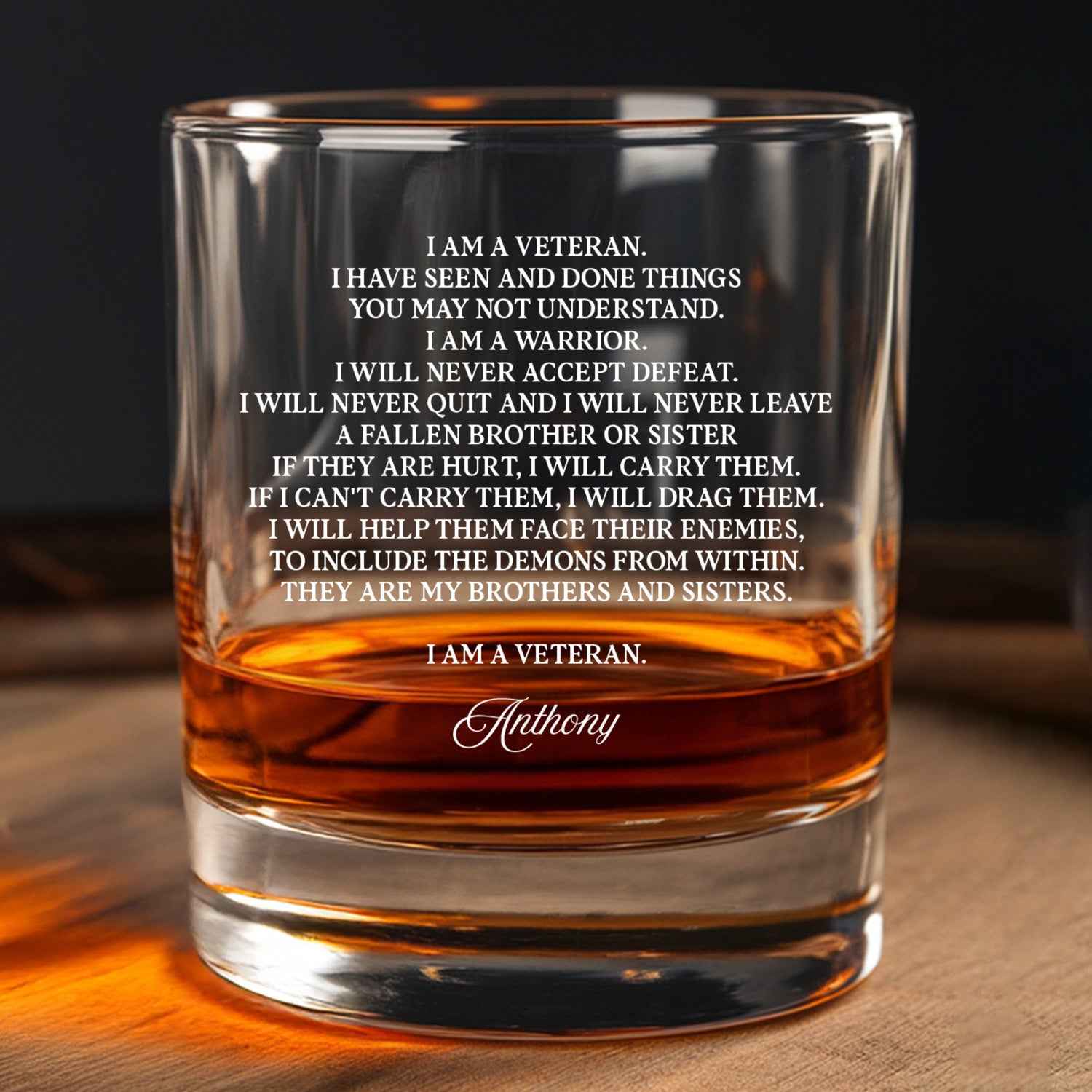 Personalized Veteran Creed Decanter Whiskey Glass Gift Set | Veteran Gift | Dad Gifts Army | Gift For Veterans