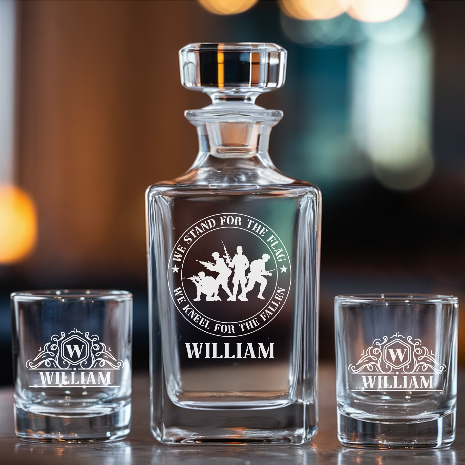 Personalized We Stand For The Flag We Kneel For The Fallen Decanter Set With Glasses, Veteran Gift, Gift For Army