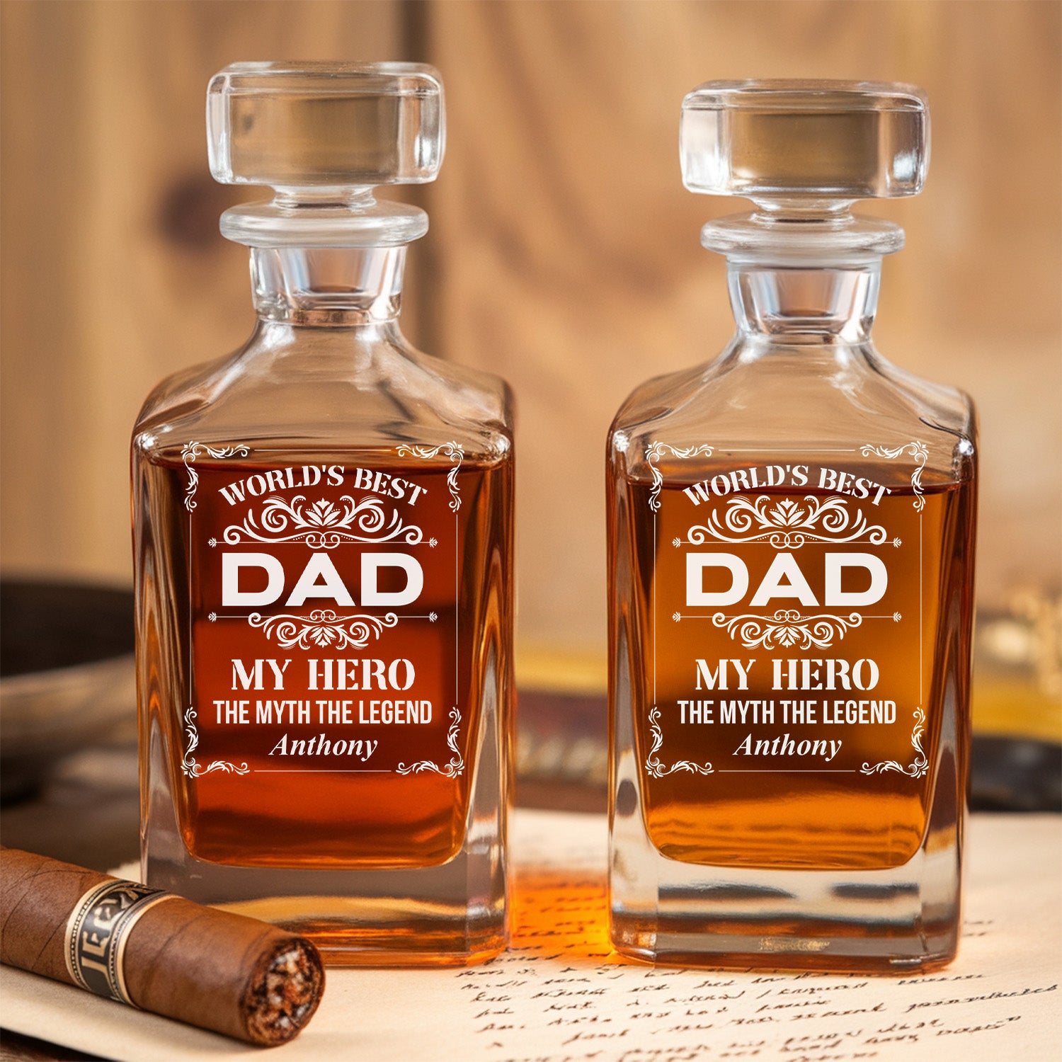 Personalized World's Best Dad Decanter With Whiskey Glasses, Gift For Dad TND076