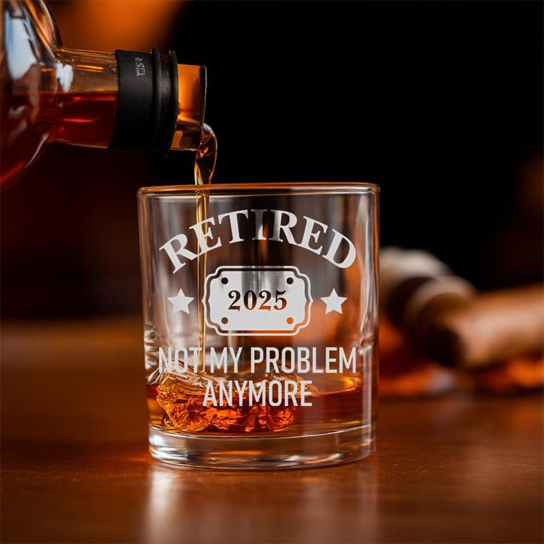 Retired 2025 Not My Problem Anymore Whiskey Glass | Funny Retirement Gift | Retired Leaving Gift TNG057