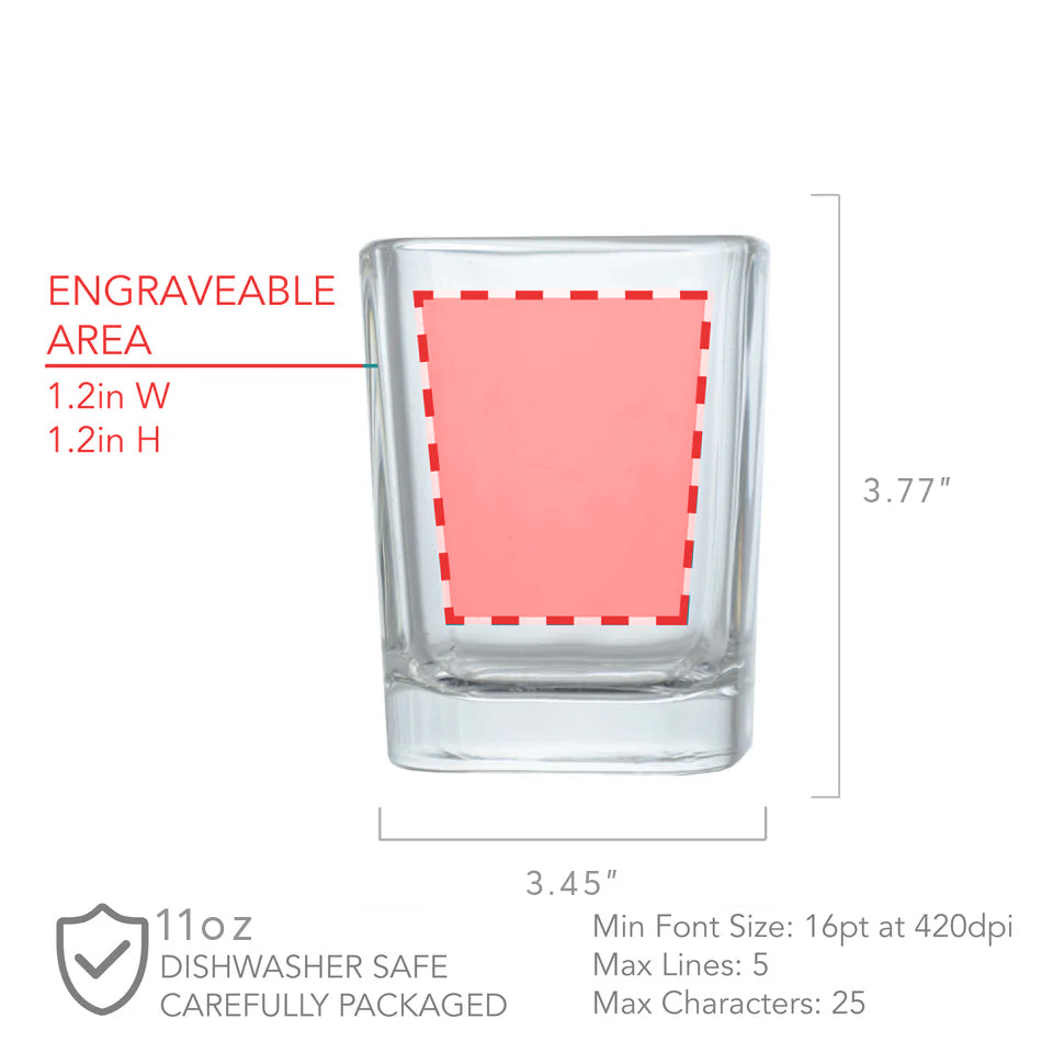 • Whiskey glass: 3.77" x 3.45", holds 11 oz