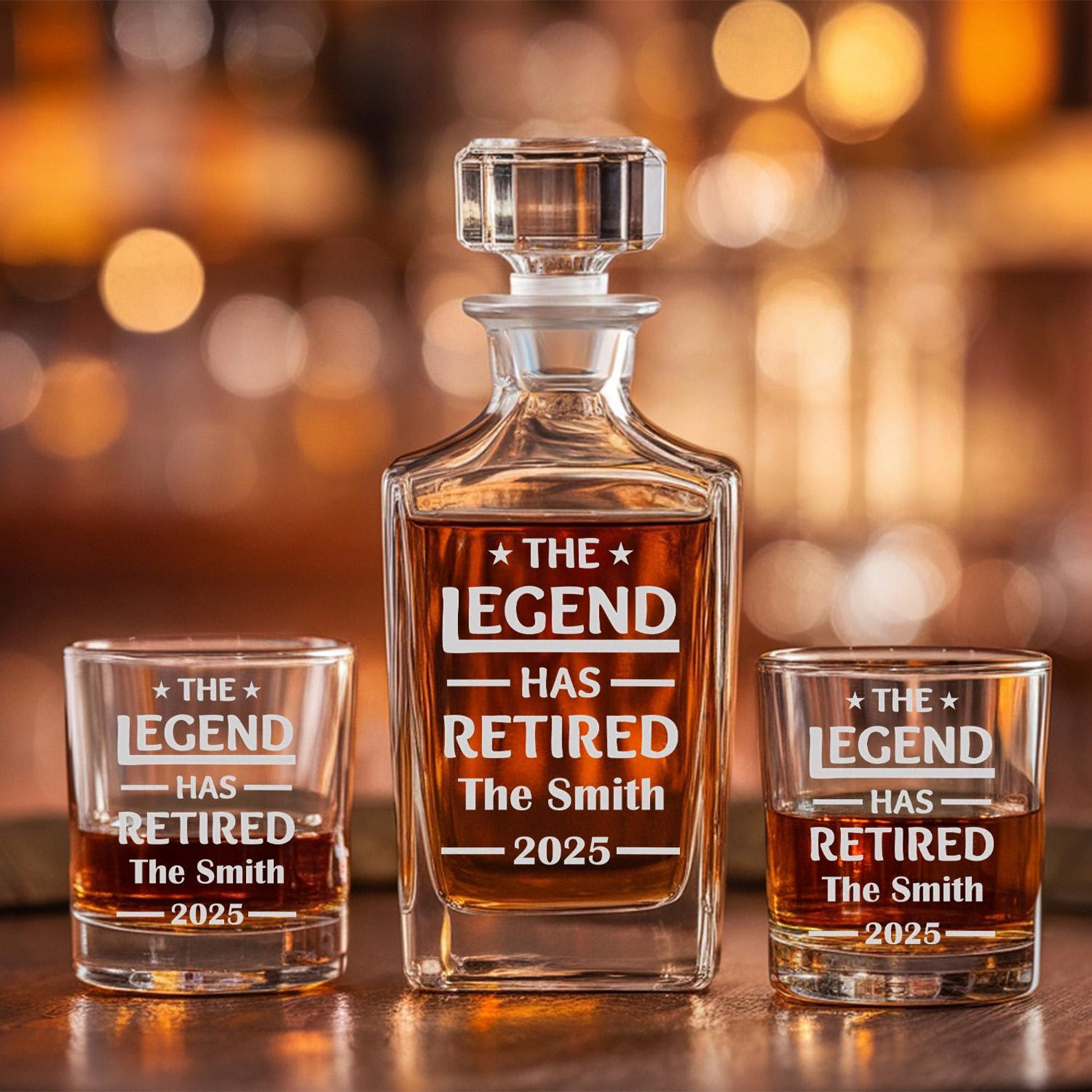 The Legend Has Retired Whiskey Decanter Set With Glasses | Happy Retirement Gift | Gift For Retirement