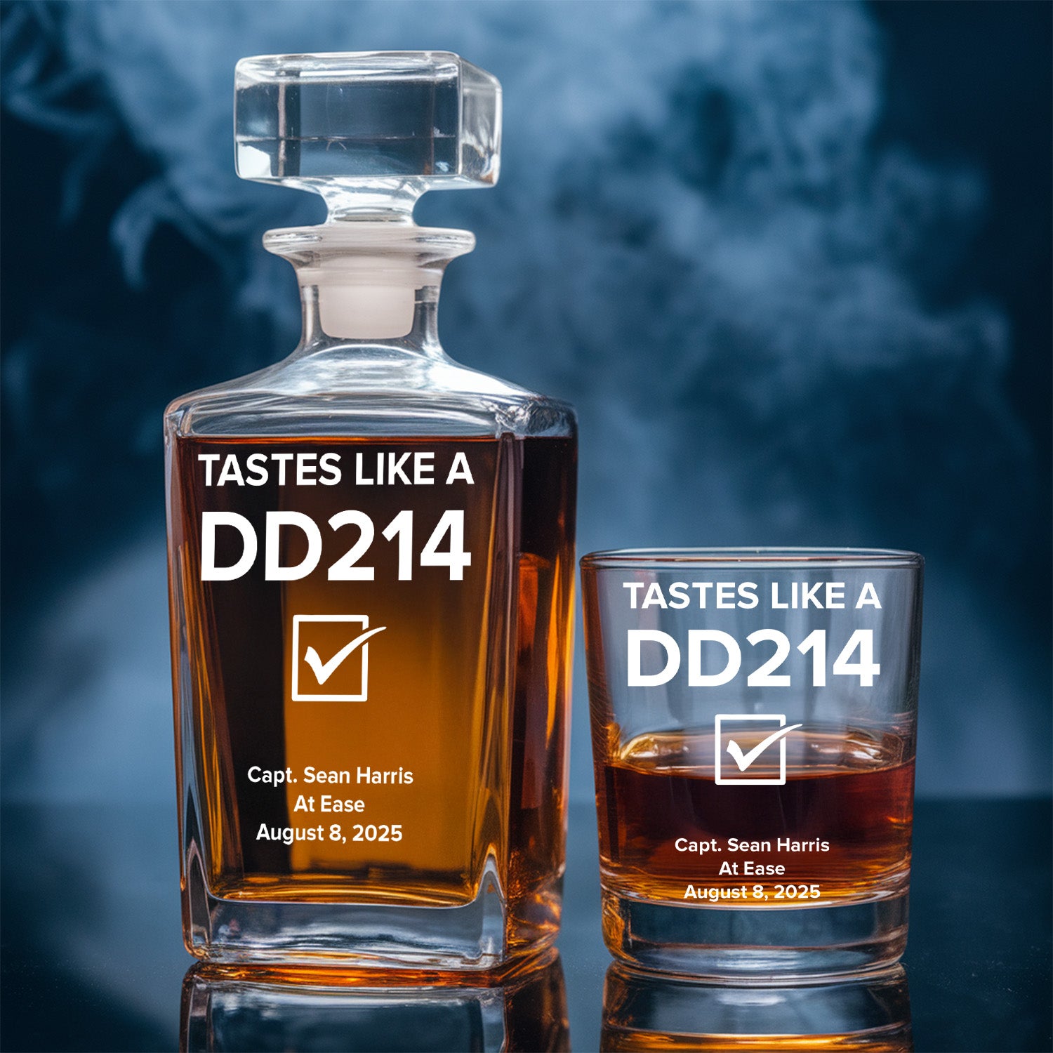 Personalized DD214 Military Retirement Decanter With Whiskey Glasses, Military Veteran Gift, DD214 Gift, Custom Veteran Whiskey TND084