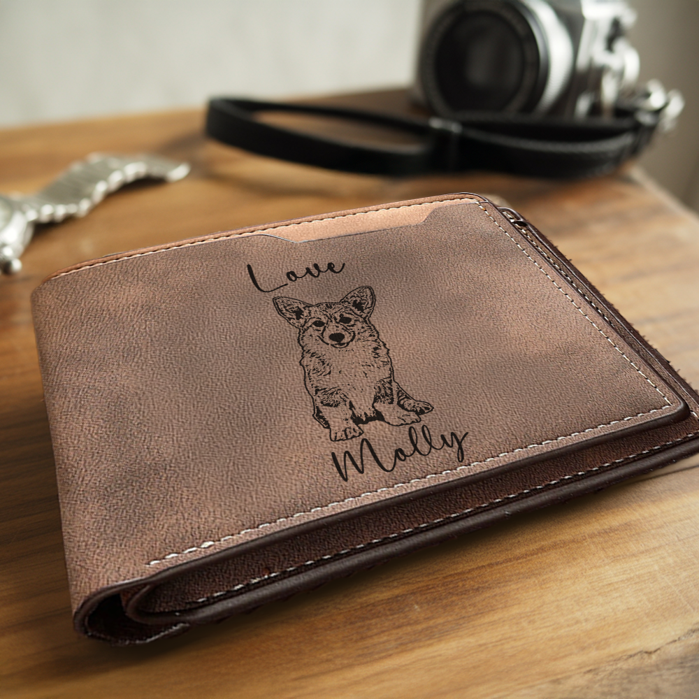 Each wallet features a custom engraved design, adding a personal and meaningful touch. This unique piece combines functionality and sentiment, making it an ideal gift for any special occasion.