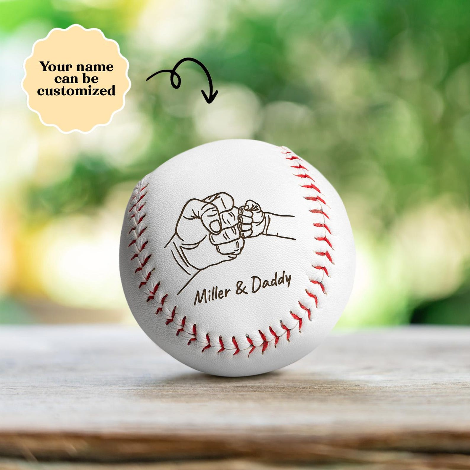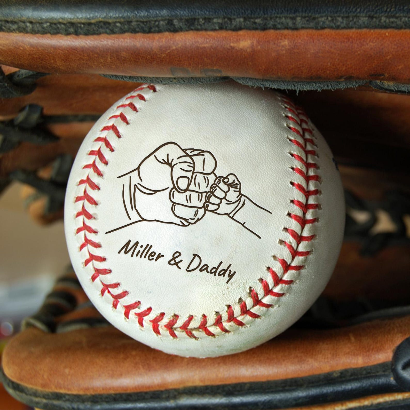 Personalized Dad and Kid Fist Bump | Custom Name Engraved Baseball | Father's Day Gift