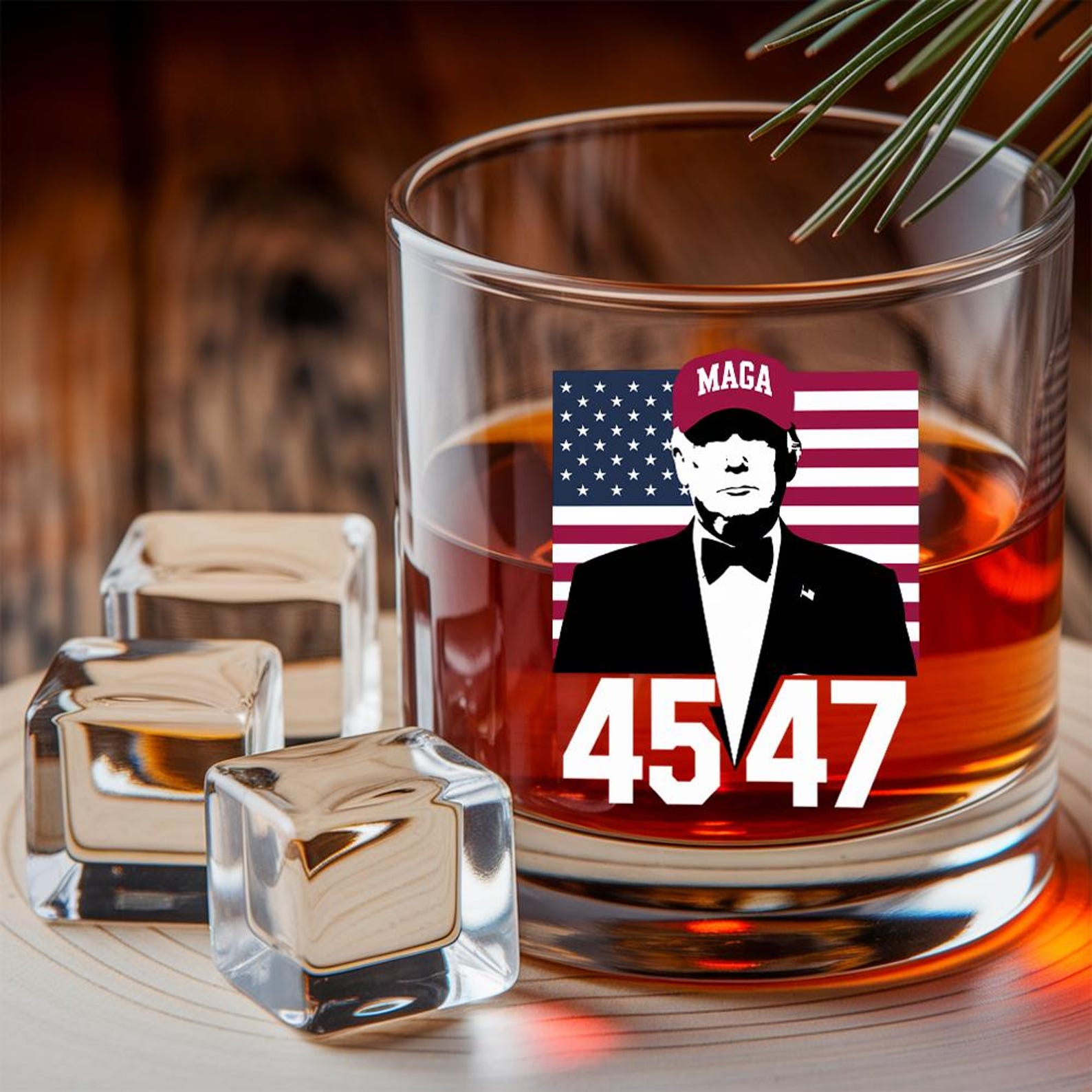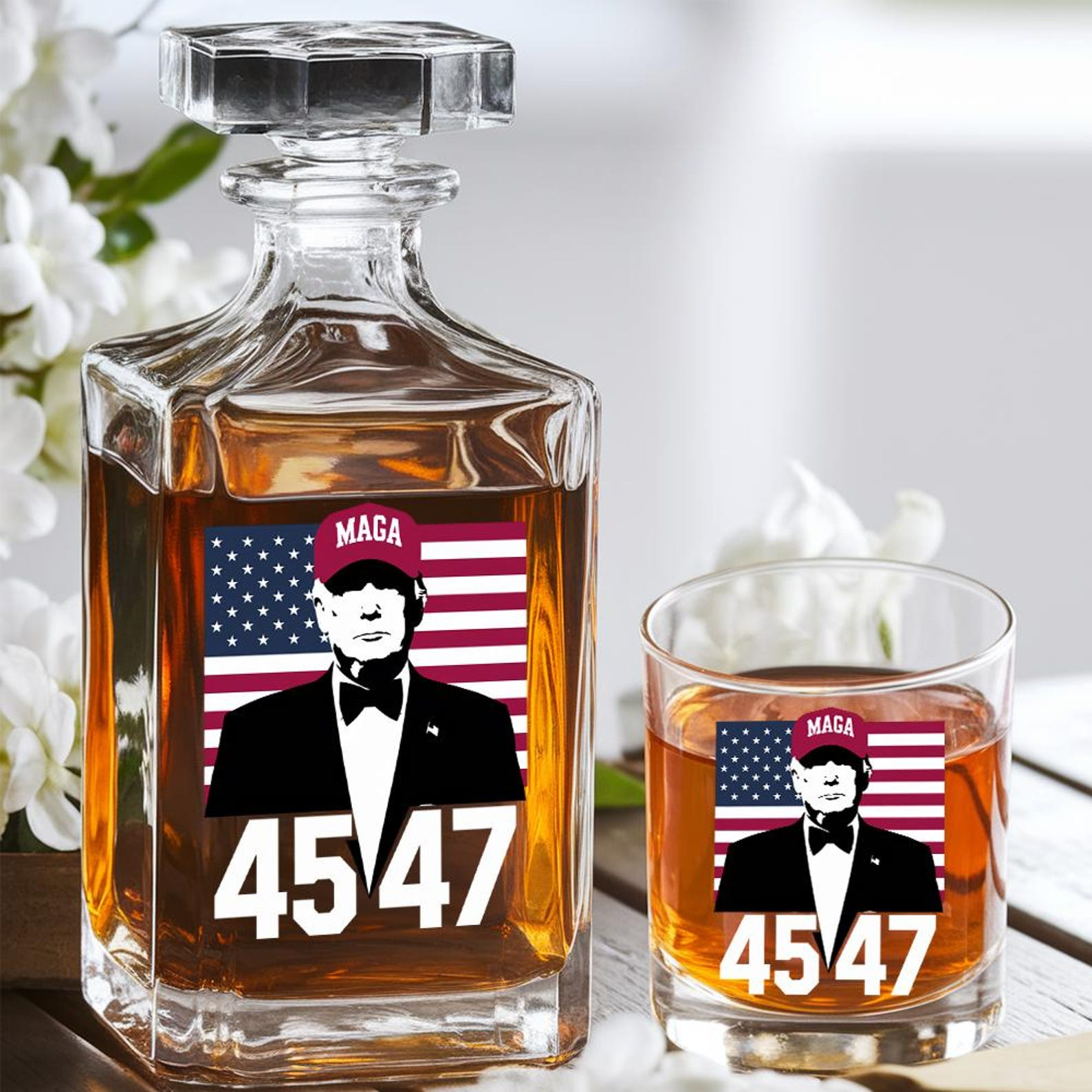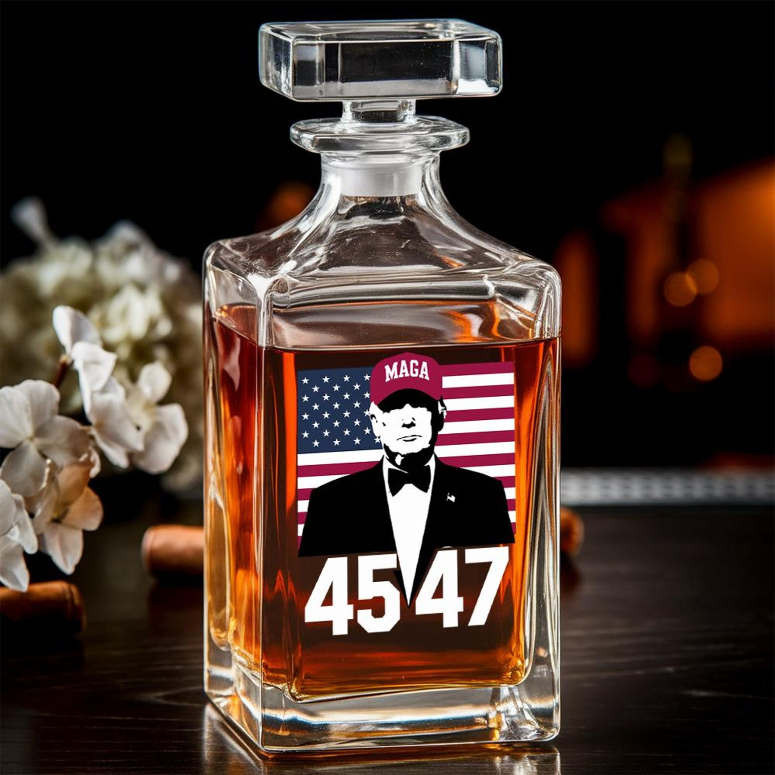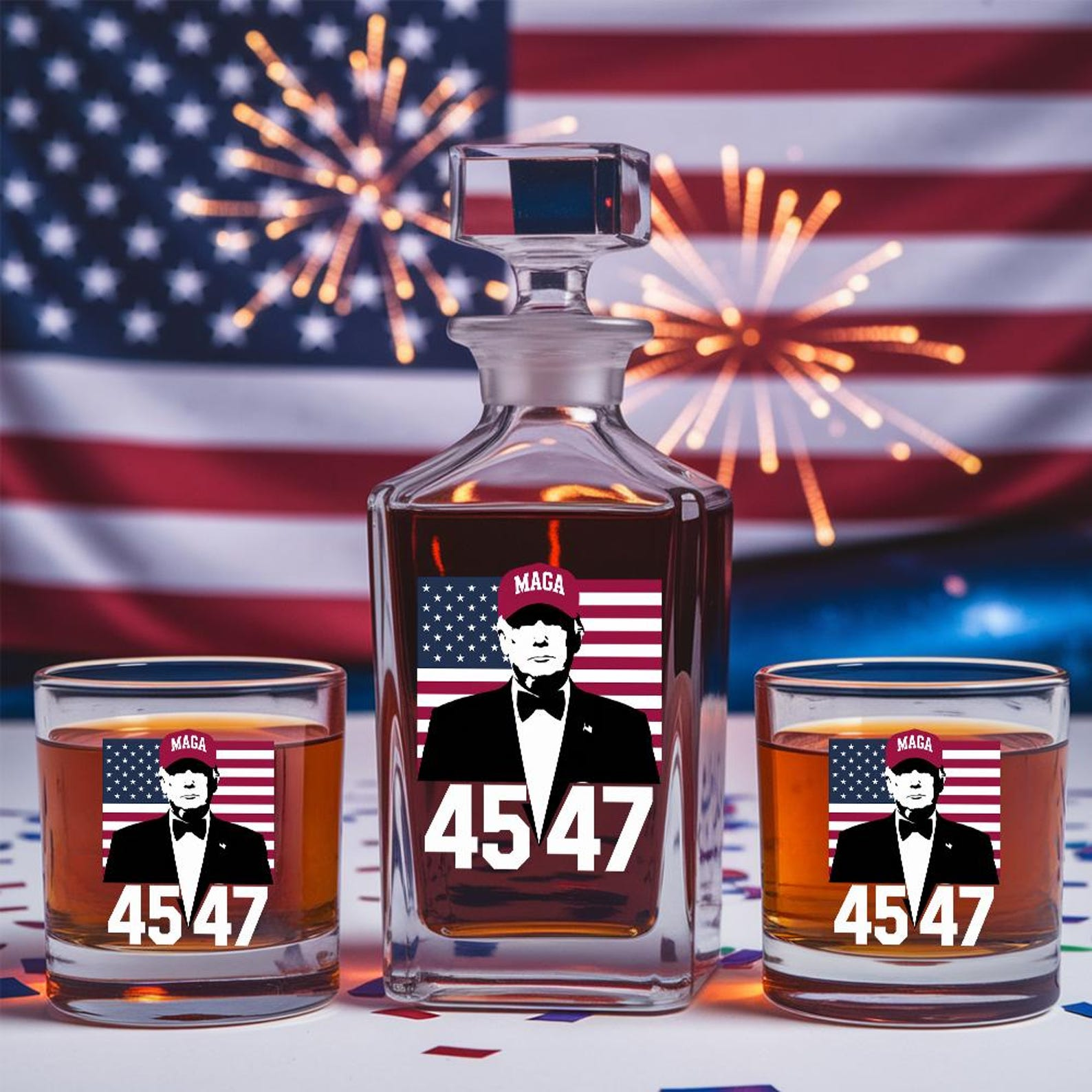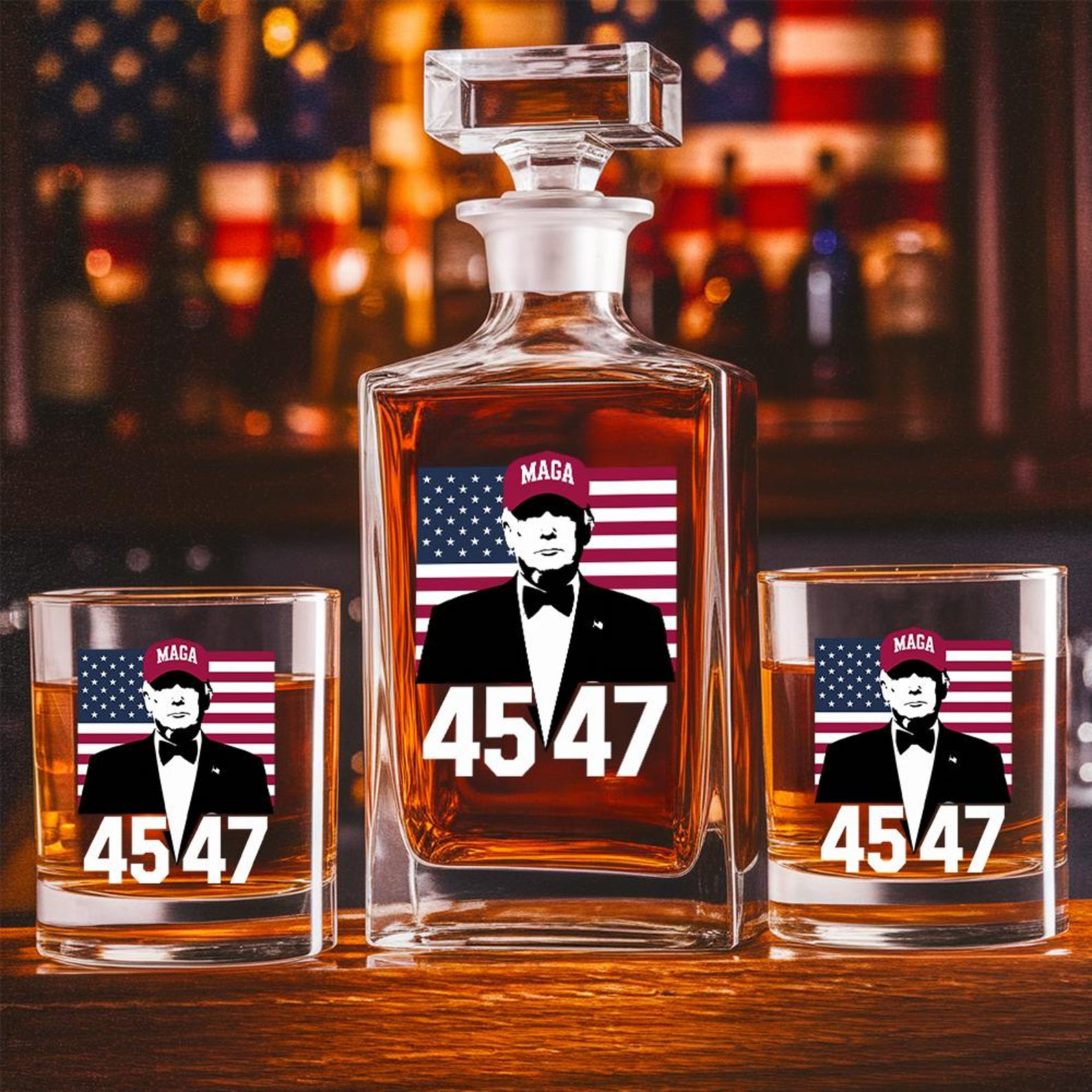 Trump 45 47 Decanter & Whiskey Glass Set | Patriotic Gift | Funny Engraved Whiskey Decanter