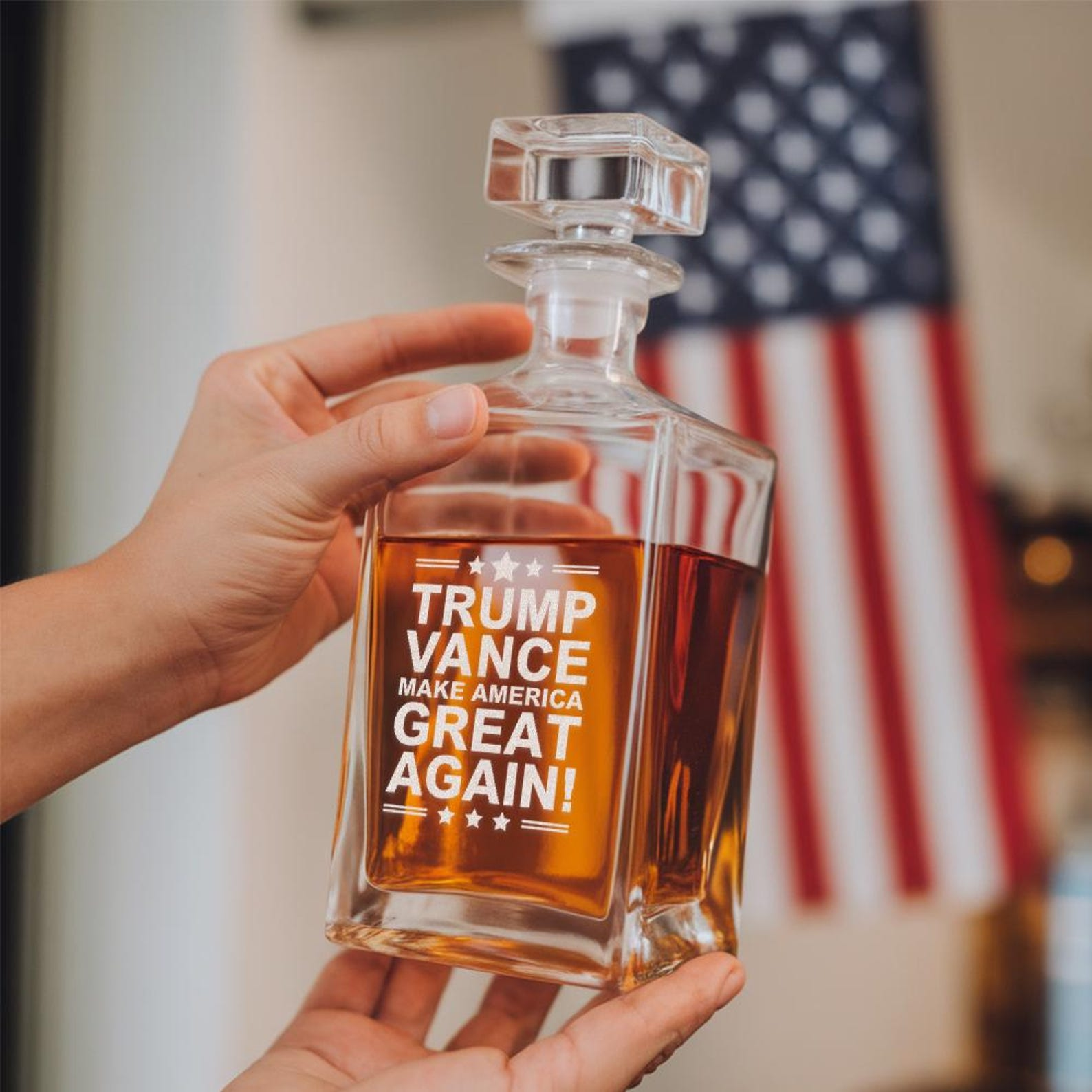 Trump Vance Decanter & Whiskey Glass Set | Engraved 45-47th President Trump Whiskey Glass | Patriotic Gift for Him EO06